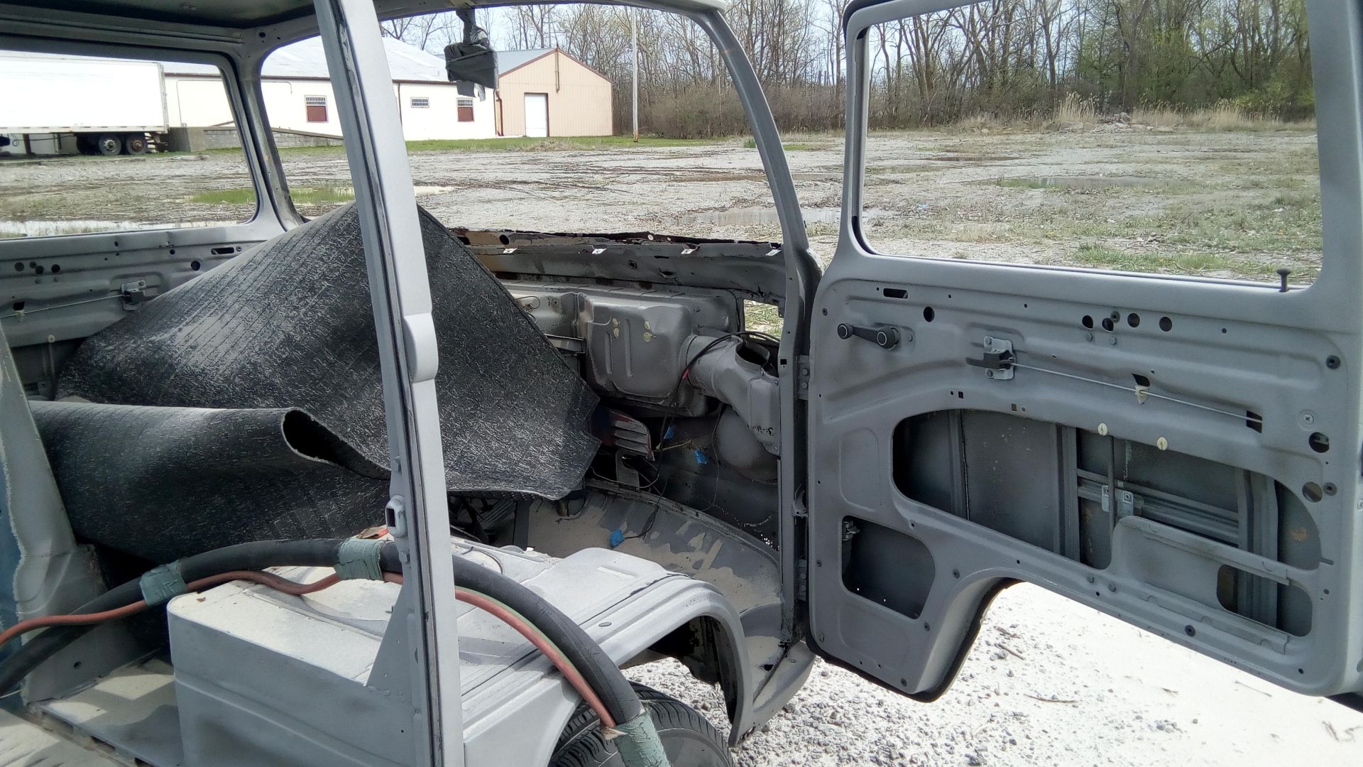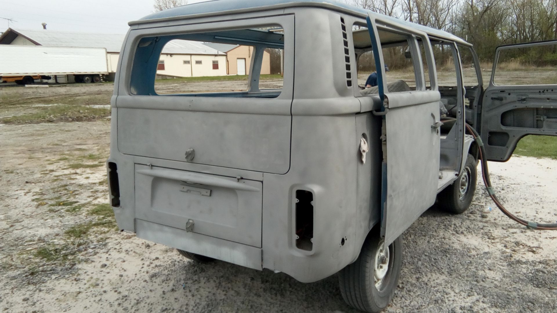 Nose job in progress. Carlos ended up pulling the A pillar a bit to enlarge the door gap, which used to be only a few mm's and the front edge of the door was almost scraping. This is a brazilian??? nose and has the round indentation for the VW emblem, which I was gonna have him flatten out, bus I ...