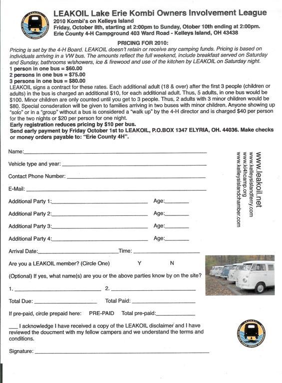 Dates for this year's Kombi's on Kelleys Fri Oct.8 thru Sun. Oct.10