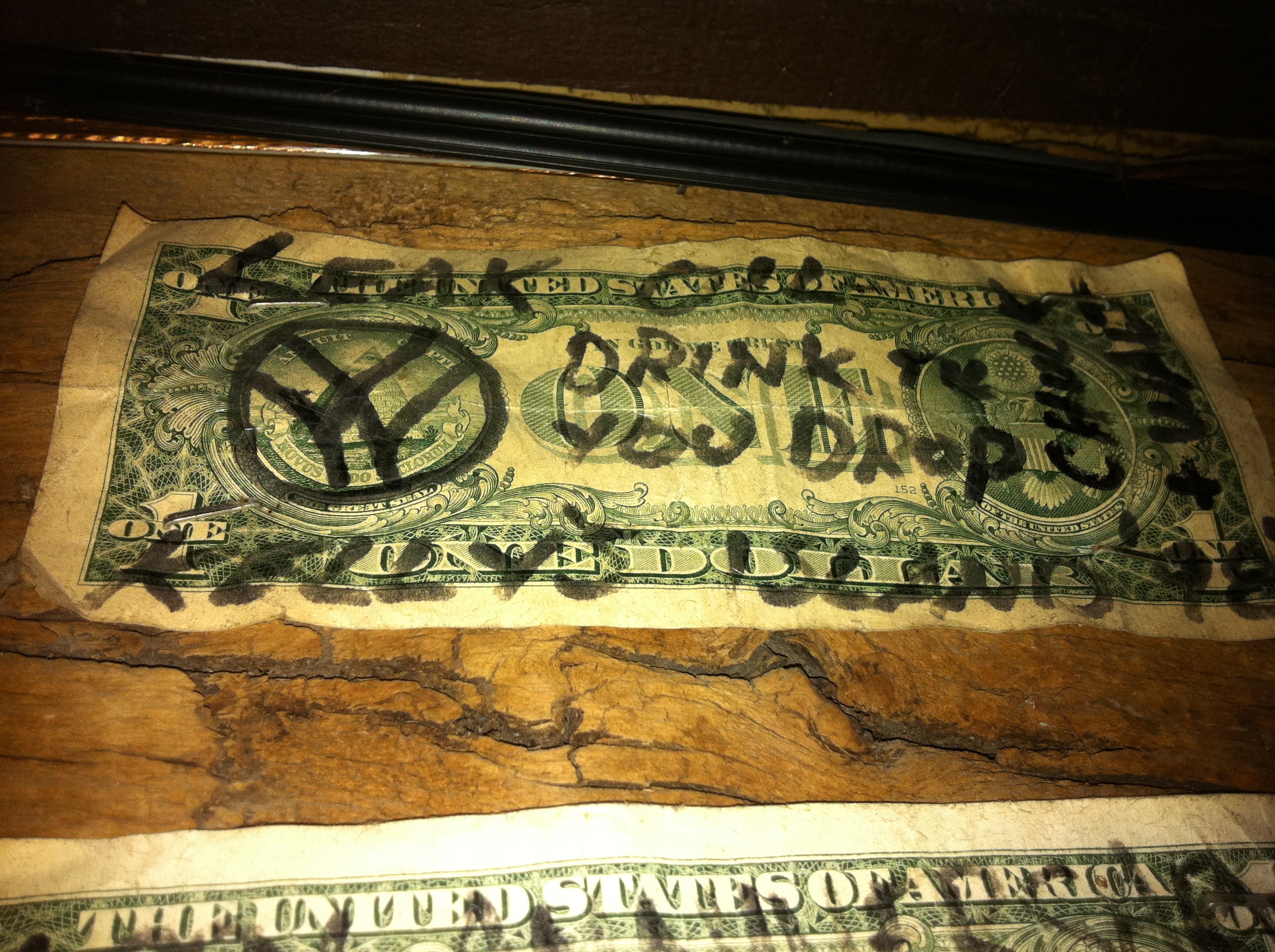 Up on town Chuck found a "LEAKOIL" dollar from the late 1990's he put up back in the day.