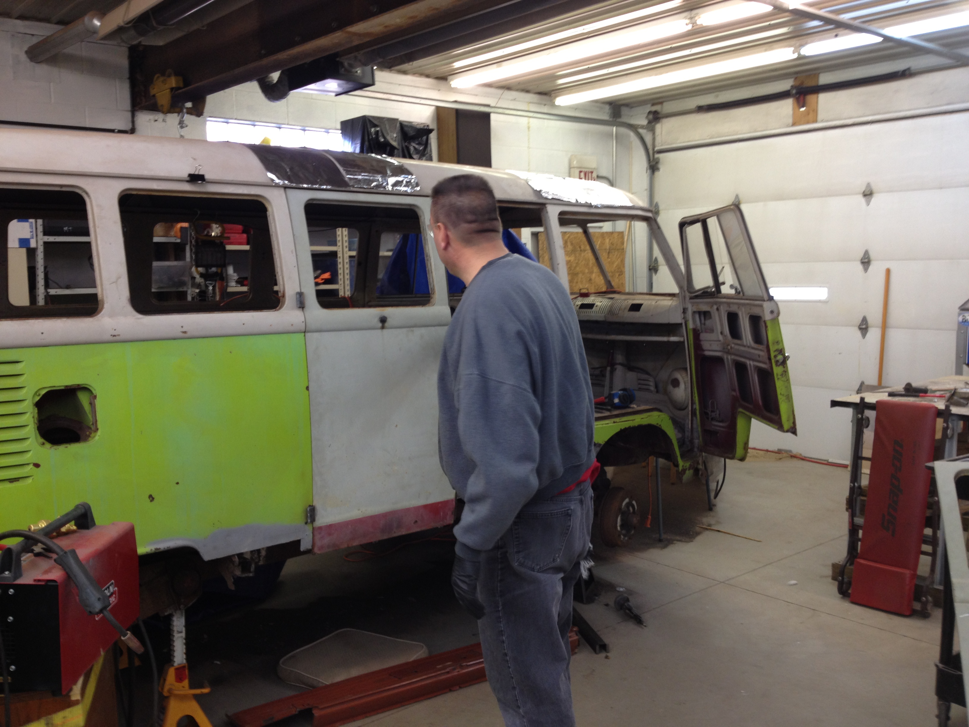 I'm thinking it will be easier to do most of the cutting, fitting, and tacking with the door on the bus to maintain gaps and fit, and maybe pull it off to do the final welding. Is this how you did it? I do have Gerson inners/outers, but strangely they're different heights- I think one is 5" and one is 6" tall.