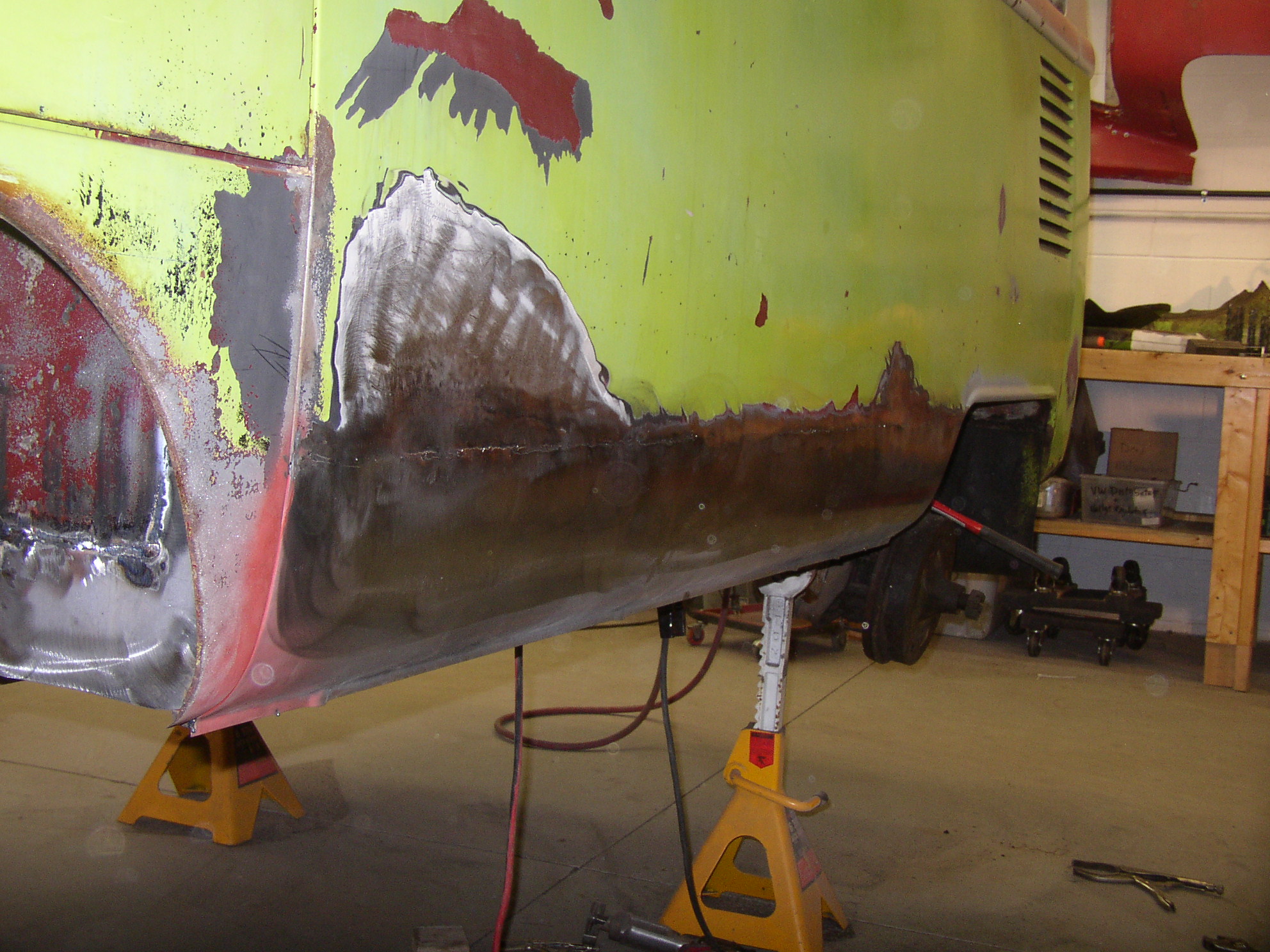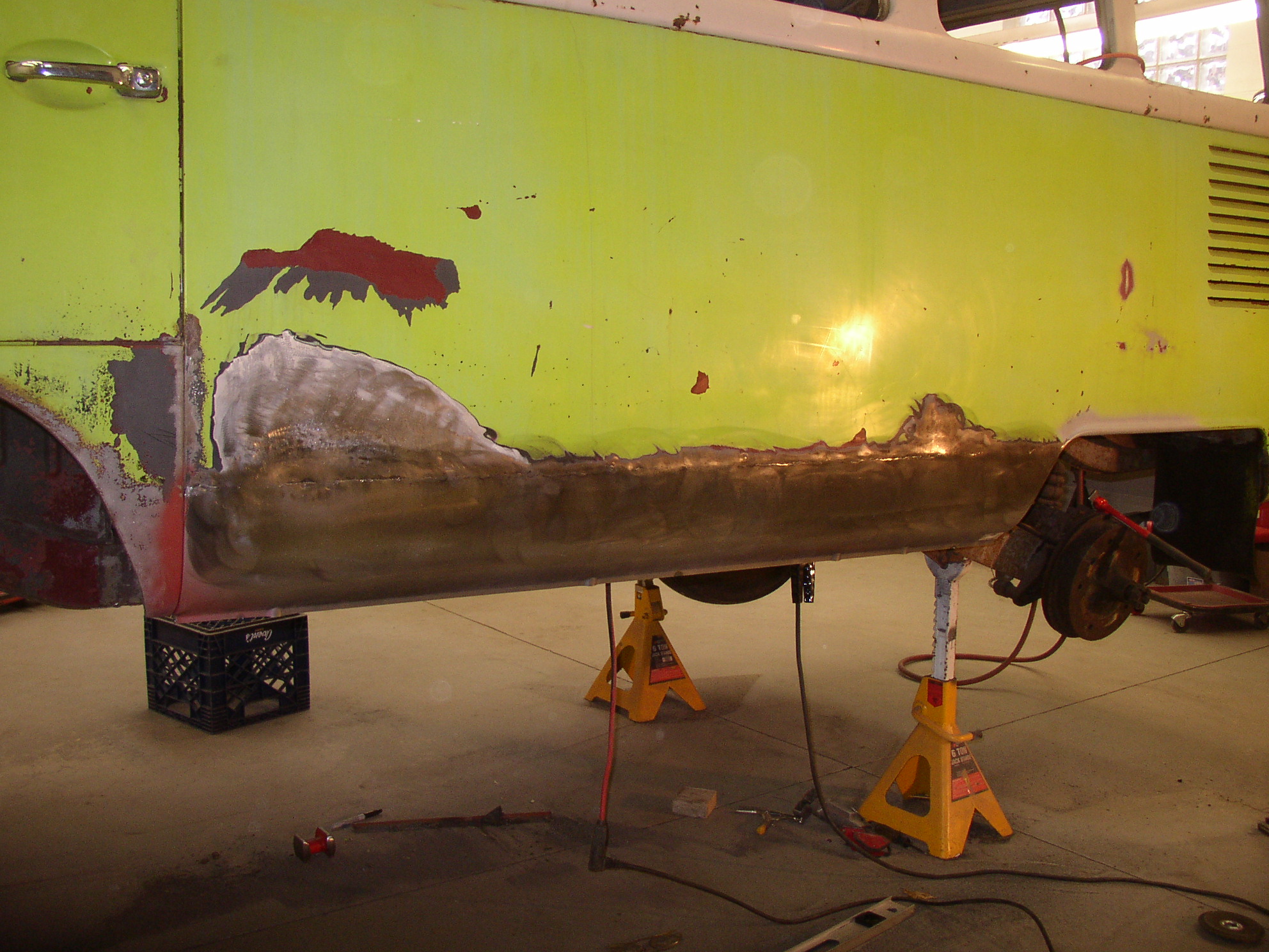 I moved the bus over so I have more working room on the driver's side using HF dollies. If they're strong enough to hold my fat ass, they'll certainly hold a bus.