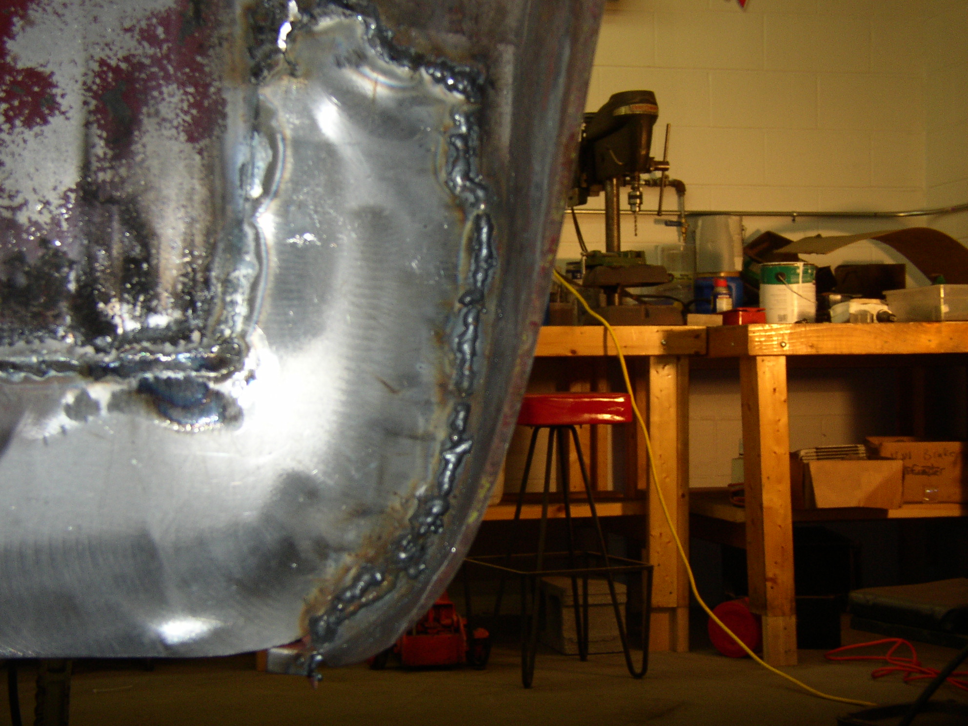 Funny story: I'm working along, super happy with the Miller, when I do a tack and the welder just welds like shit. What happened, out of gas? Bad spot in the metal? Pop, spatter, giant fireworks like I've never seen before. WTF? I try it on a piece of scrap and it welds fine. I go back and weld further down doing a tack and it's fine. I go back to the spatter spot, grind it down and try again, spatter city, pop, terrible. I jump over it and go to the next spot and it's fine. A few minutes later I check the inside to find my spatter spot was caused by one of my giant magnets on the inside at that spot. Wow, I never thought a magnet would interrupt a weld like it did. Live and learn.