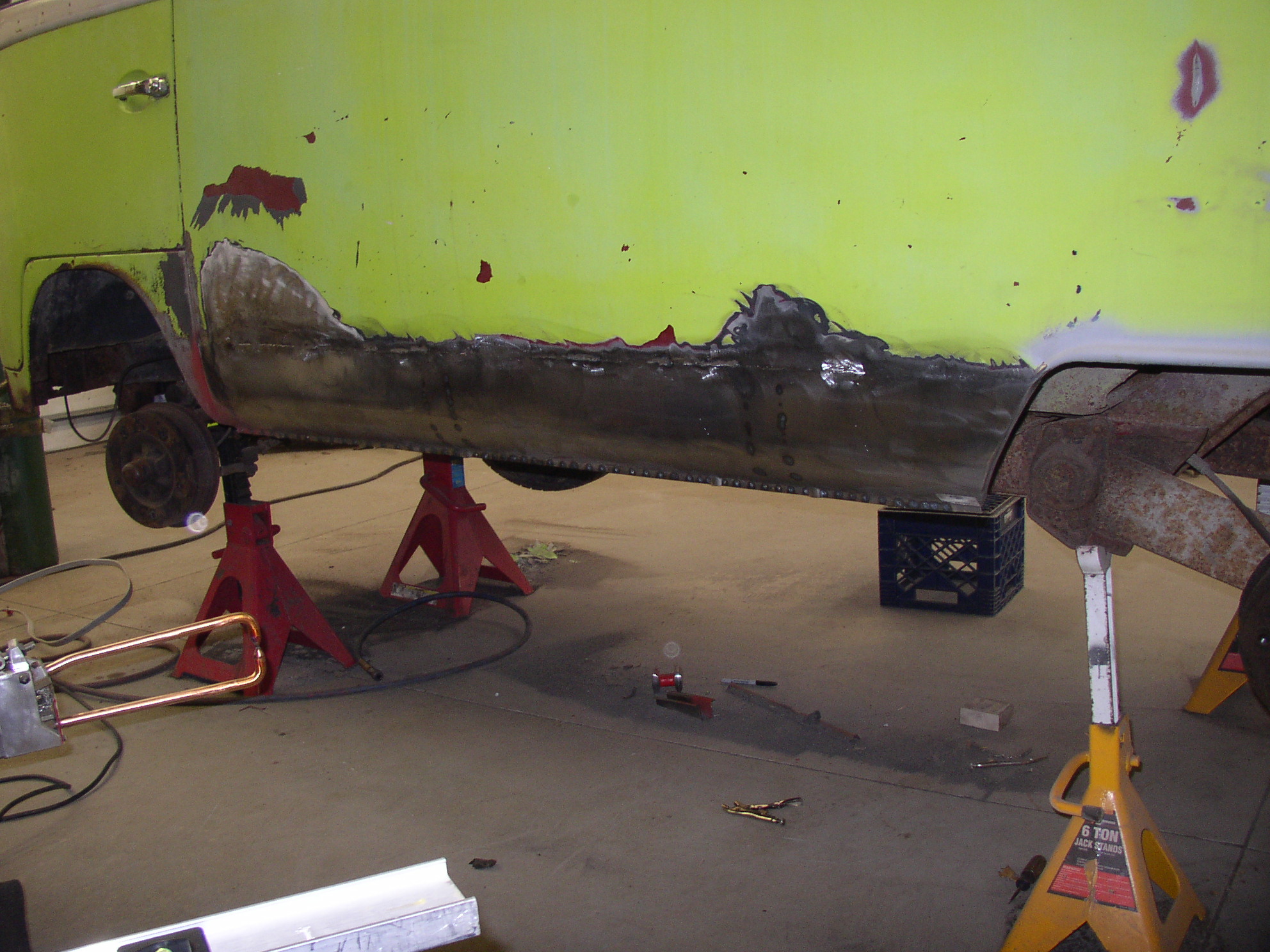 Nice job on the "butt" weld's Bruce. Like I said earlier, I find those to be very difficult unless you get the gas and wire just right. Looks like you were able to avoid that vertical outer seam. That's a relief. Battery tray looks great. Can't wait for the long left rocker pictures. That's where I got impatient and warped mine.