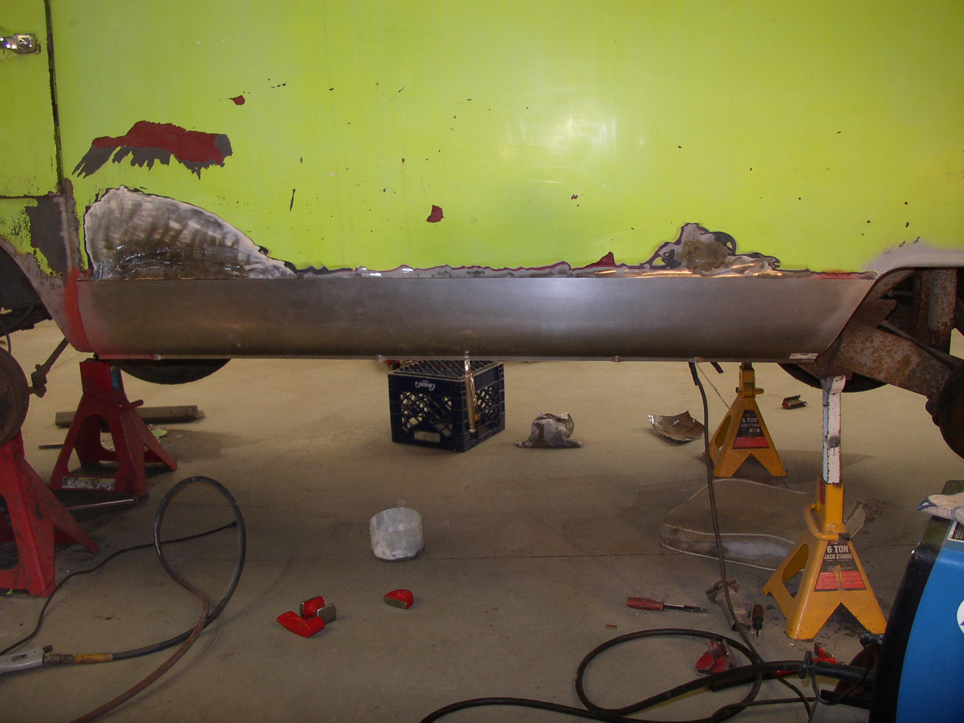 Here's the floor done with seat mount in, but I didn't have time to grind it out yet. Thankfully with the new Miller there's a lot less grinding.