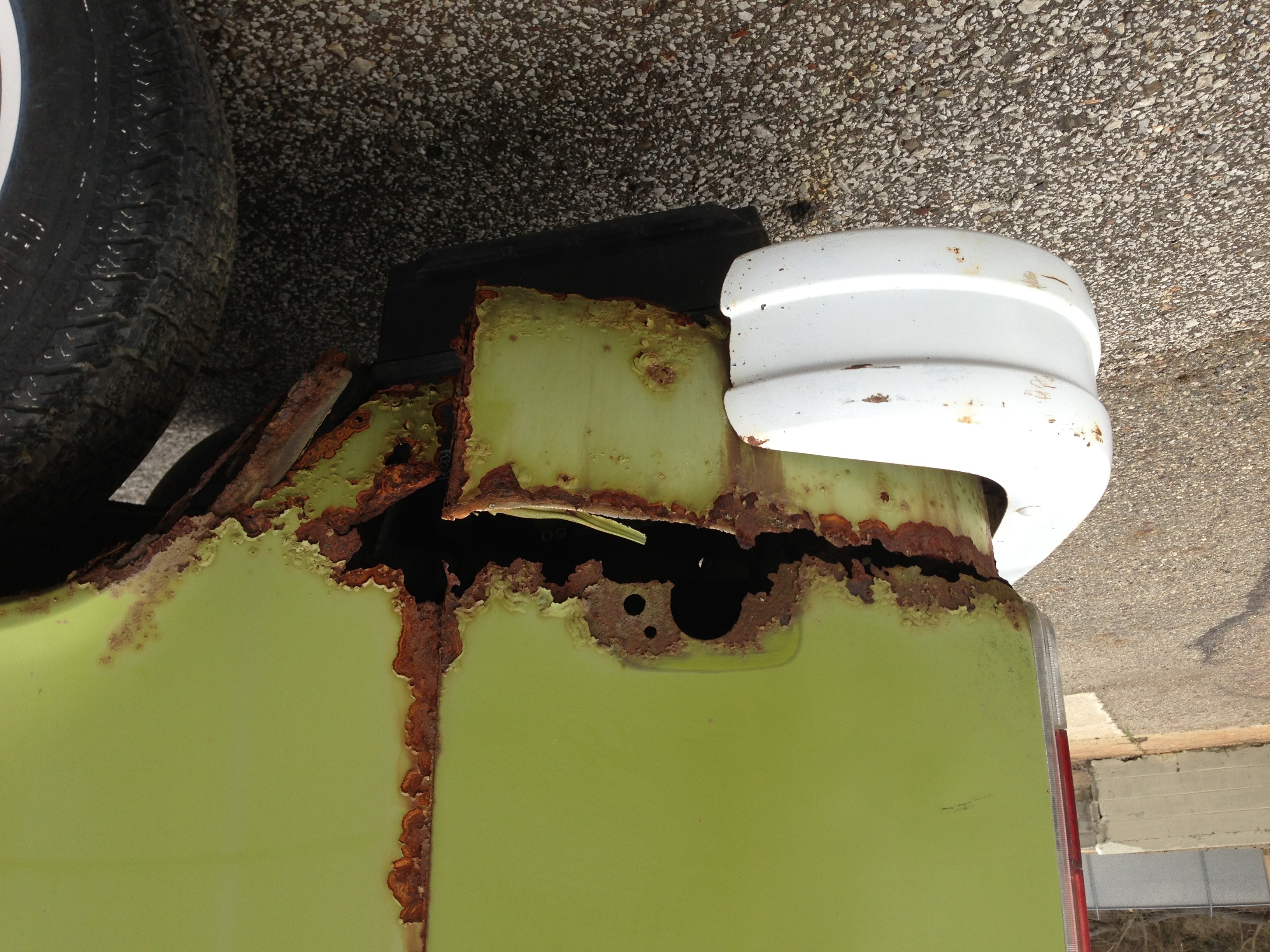 Made a lot of progress today on the body work. 90% of the undercoating is still there I had one bad area to cut out. I made the rear apron from scratch and part of the rear fender.