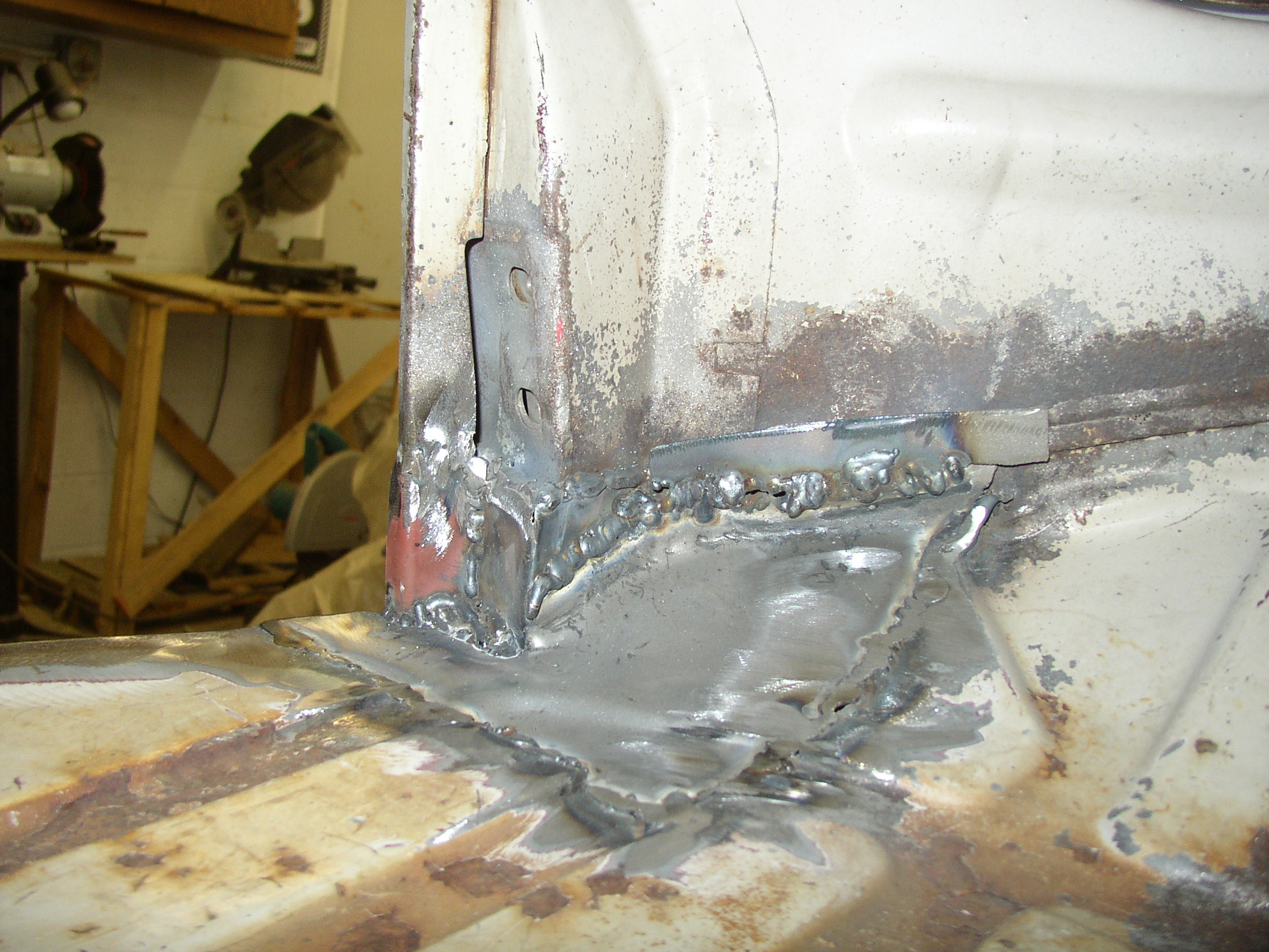 Right A pillar with all of the bad stuff cut out, and the toe kick cut out.