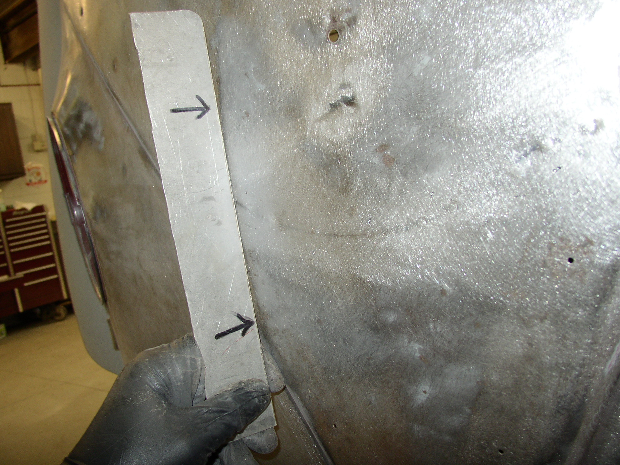 The results were terrific- here’s a straight edge showing the dent is gone and the correct crown is back in the metal with only a super thin skim coat of filler needed. This one came out so well that high build primer might be all it needs. I use a straight edge as a cheat constantly because it's a lot better than my eyes or fingers.