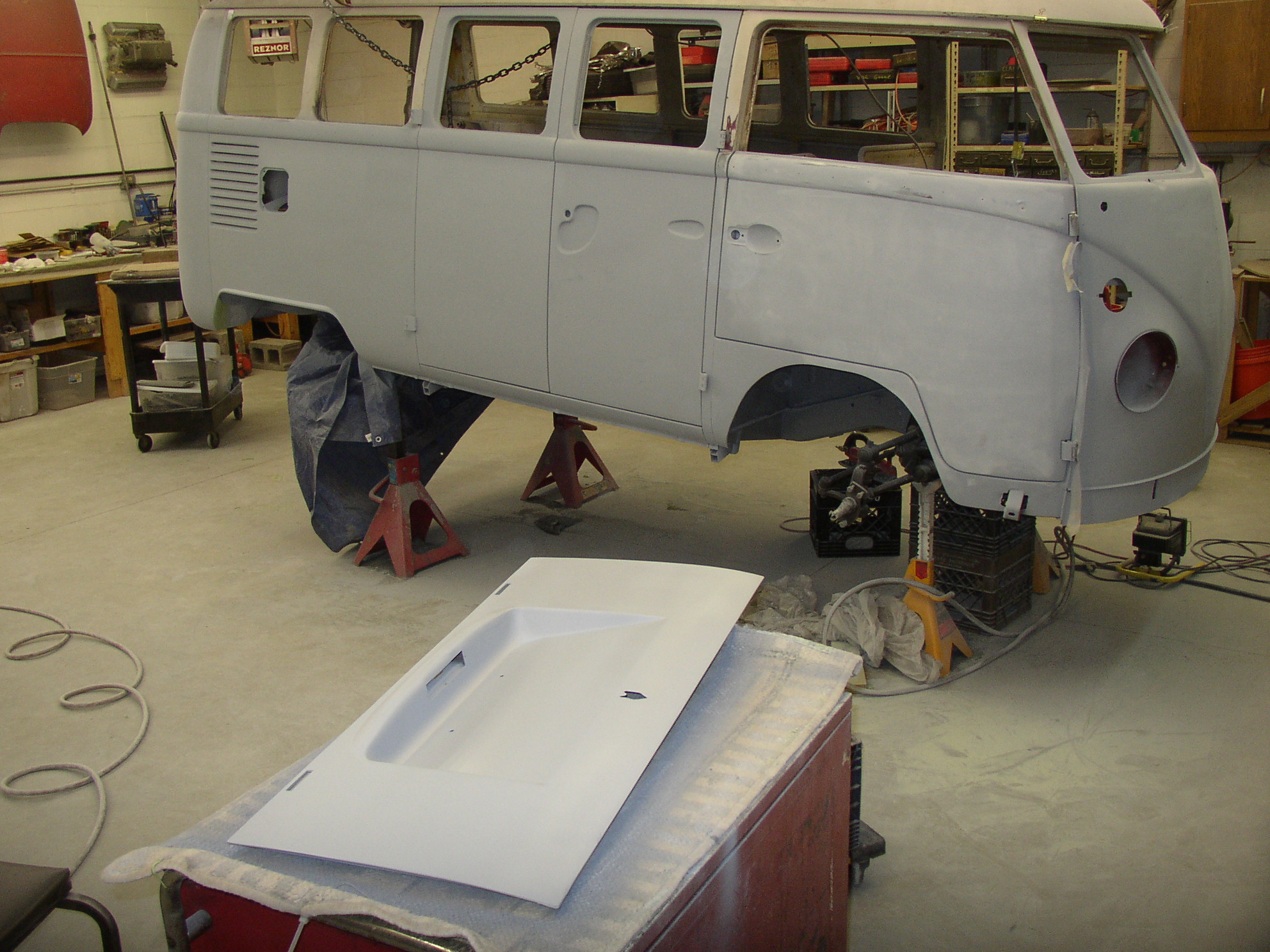 Probably about 435 on the hours and should have color on around 500-550, my original estimate of 600 hours might not be too far off. I will be talking to Bill shortly about scheduling upholstery and headliner after color is on. Still need to prep and paint the interior before the exterior gets color. Getting psyched that this will actually happen in my lifetime!