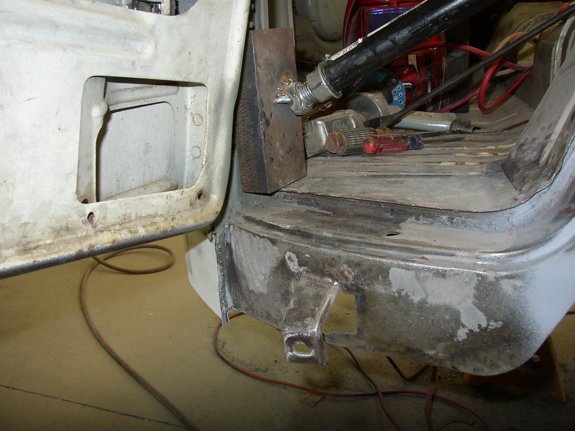 Man, did that SOB have a lot of paint on it. It also had "west coast" mirrors on it so I'll weld up the holes.