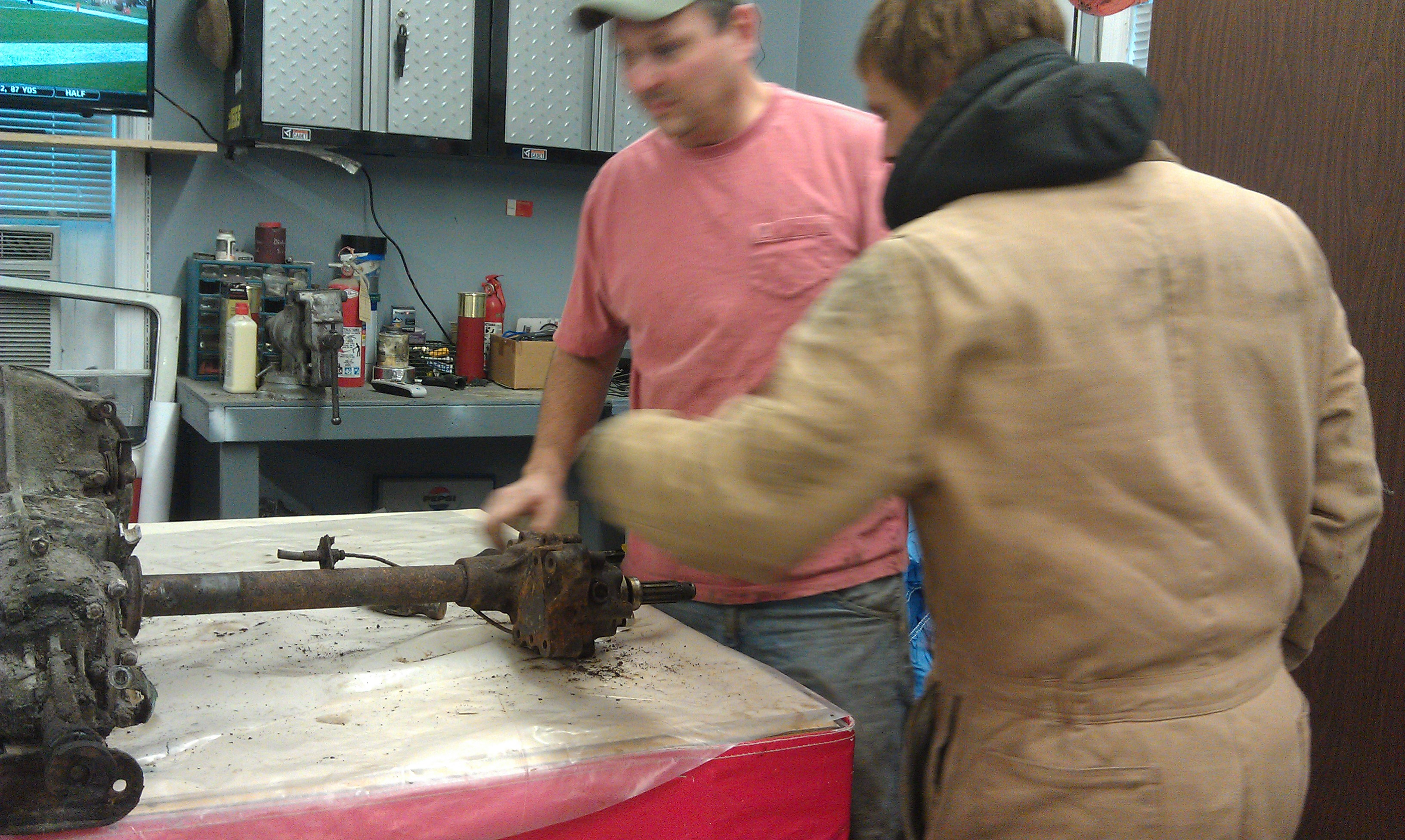Oh yes... Ed stopped in to say Hi, and no visit out to Kirk's is complete without stopping in on Craig. So off we went...he was working on taking apart his transmssion. It looked like hard work, I sat and watched. :lol: