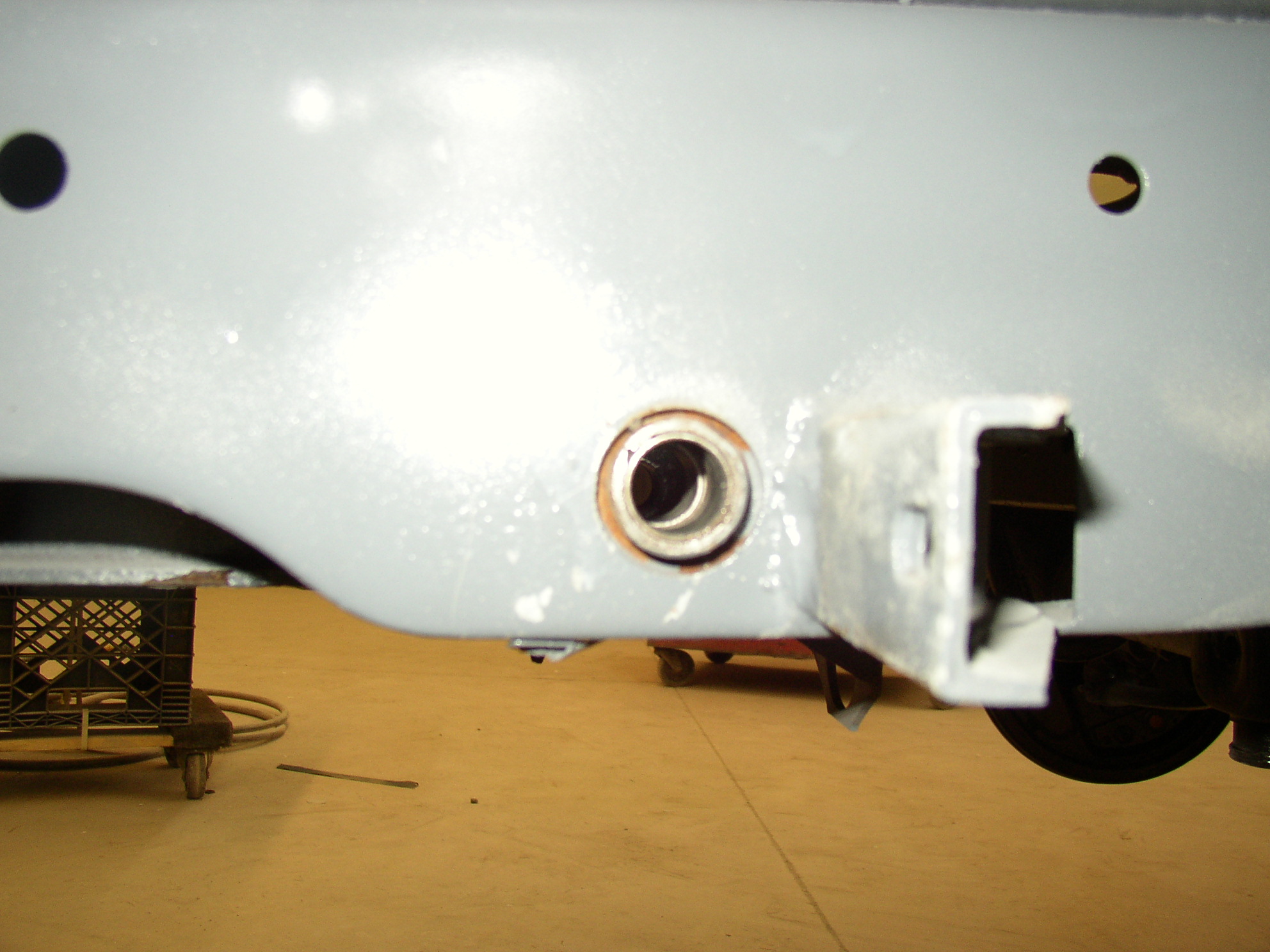 The cargo doors are "pretty good" but not great. The paint is good but there's a hint of wave in the mud. I'll wet sand them and buff, and if they don't pass I'll block them out and reshoot them, doing these off the bus makes it a lot easier. The engine lid came out nice considering it was probably driven over by a truck before I got it. The only big "oops" was the gun dripped on the hatch lid which doesn't show in this pic. That should be fixable but if it's not I'll reshoot it. I'm shooting all of the doors horizontal so runs are nearly impossible. I did shoot some white vertically today to try my nerves.