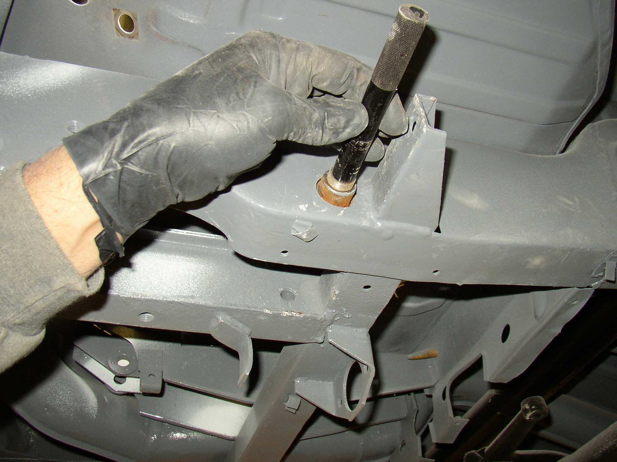 No paint today. I knocked out the clutch cross shaft bushings, there was some kind of cheesy German rubber seal wrapped around the tube I never even noticed until today. I wonder if it will make it back on the bus?