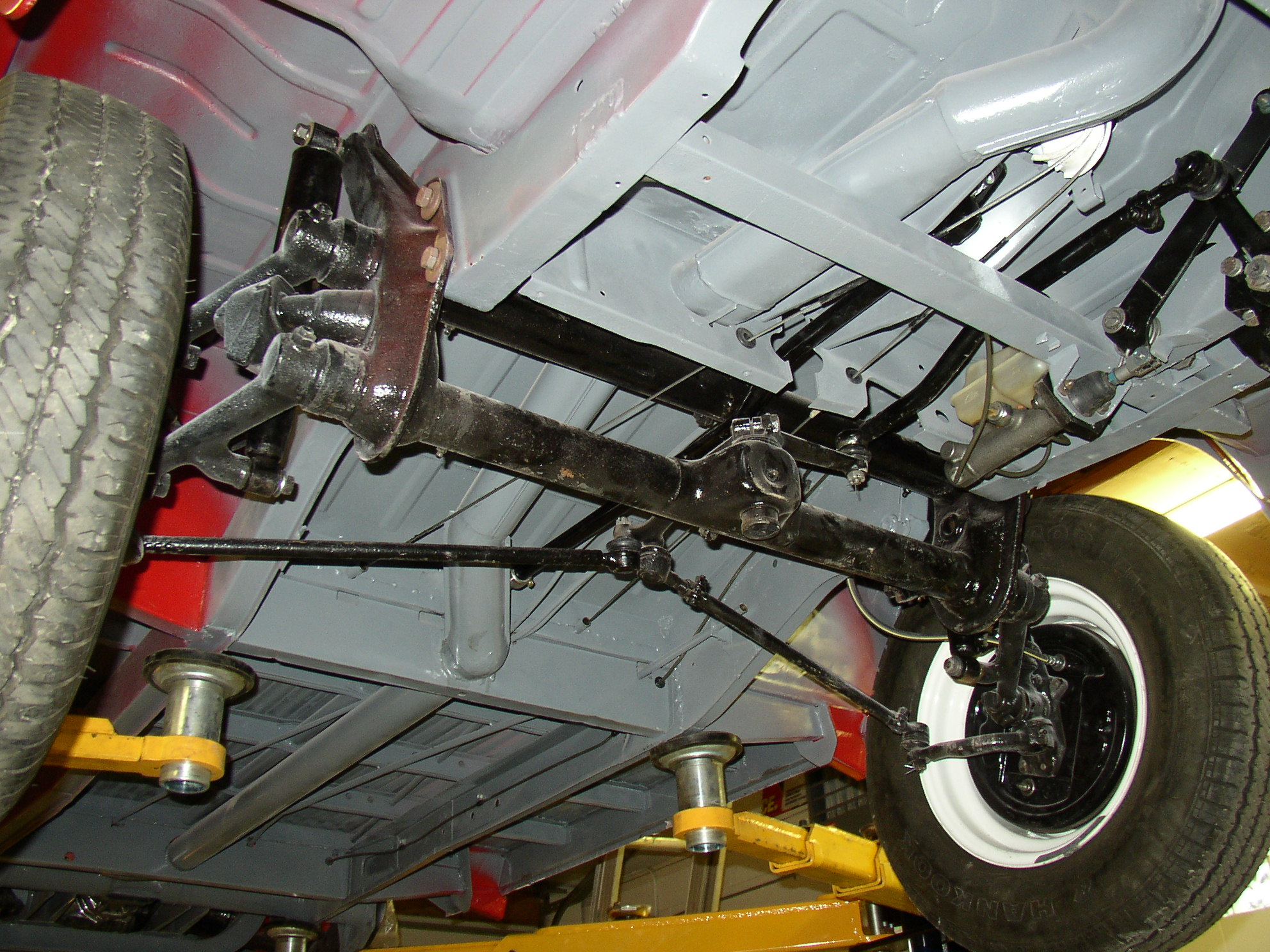 Here's part of the reason you need a spacer- the reservoir hits the crossmember.