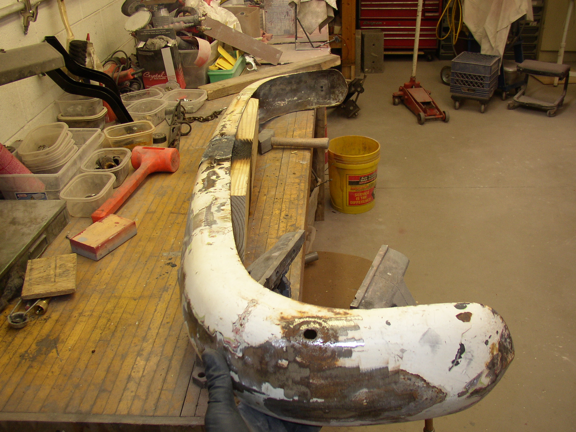 I was working on popouts while the bus was at Bills. I blasted some frames and painted them and was ready to assemble them when the bus came back. I was also straightening the rear bumper and painting a lot of small parts which will be installed. No pics of all that, though.