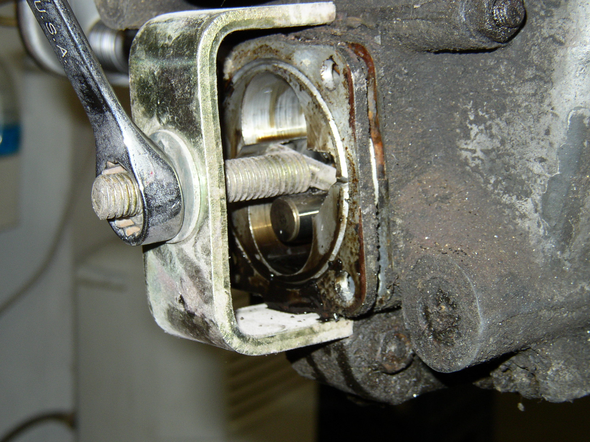 hitting the bolts on replacement camshafts with a bolt on gear.