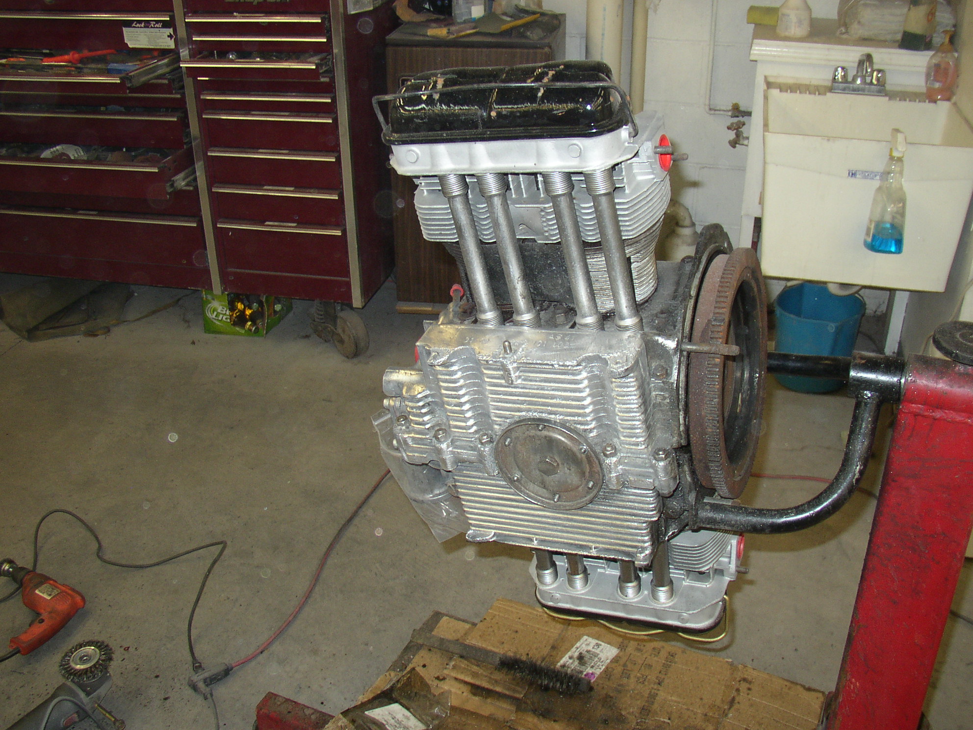 Changing the heads and trimming the engine probably took another 30 hours. :roll: It's unreal how much time is consumed cleaning, beadblasting, and painting parts. If it weren't for that, this would be about 10 hours.