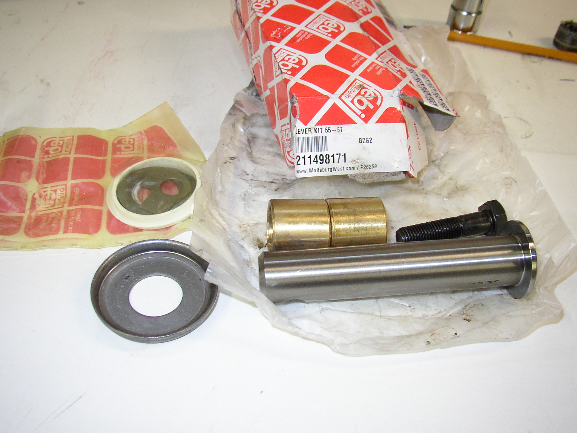 Probably original with the VW logo, the bushings and everything looked like OEM and it had less than 30 thou wear. This adds to the thought that this is the original mileage on this bus and the odo hasn't been around once. The front end was tight and the brake drums had never been cut until I cut them, I really think it's original 89K. And, besides, the title says 89K so it must be original, right?