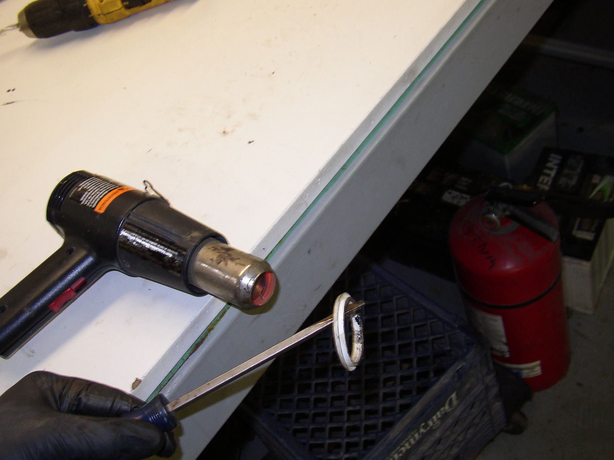 Heat the upper seal with a heat gun to soften it and