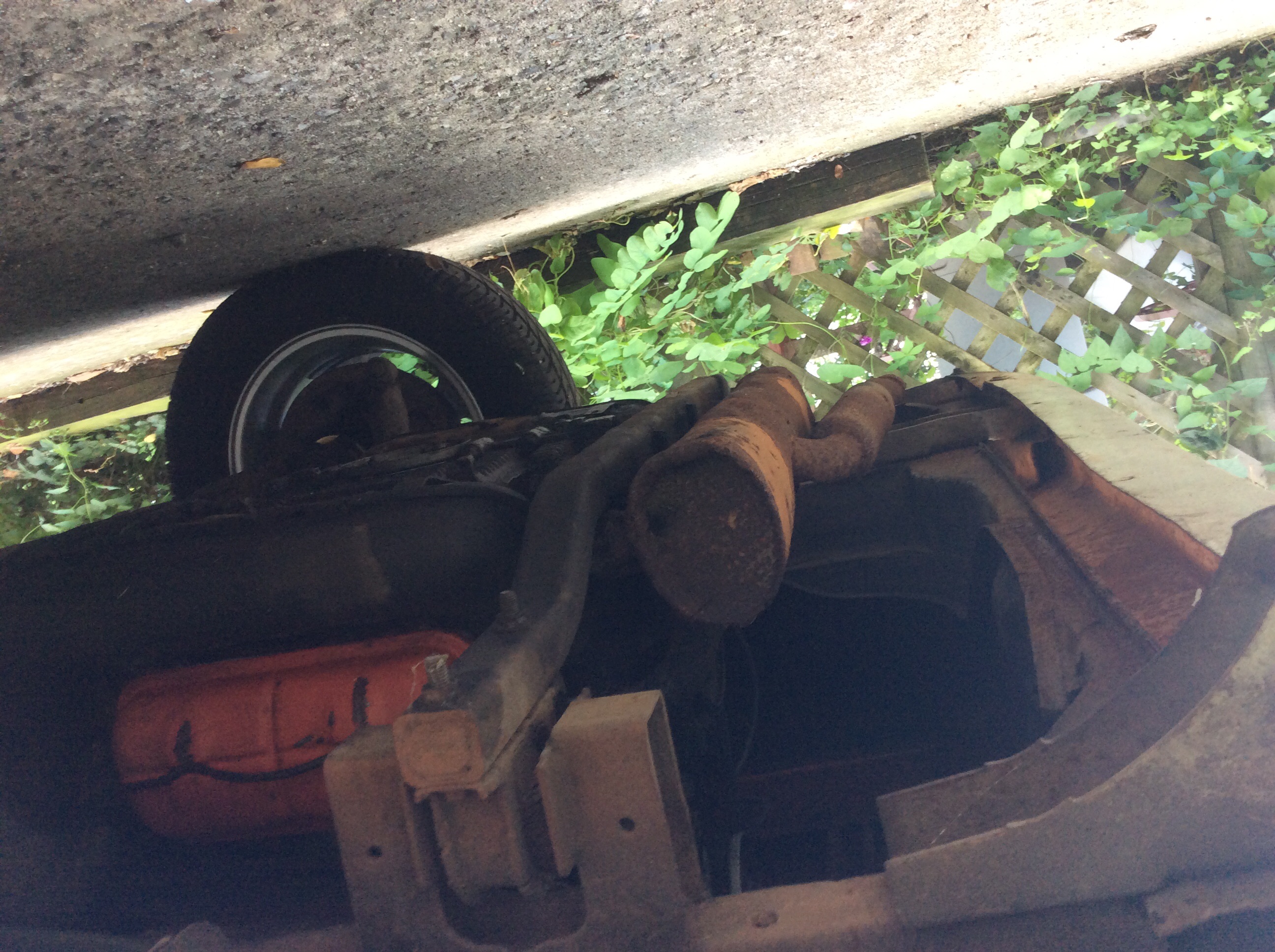 First project is to replace the exhaust. I've never seen an exhaust like this and thought maybe it was some special Central American VW Part. When I saw that it was welded to the heater boxes it was clear that this was no factory exhaust. Appears to be cobbled together from several mufflers including parts of an actual VW one. I am going to replace it with a stock exhaust and J-tubes until I can locate some good heater boxes. Not planning to drive this during the winter anyway.