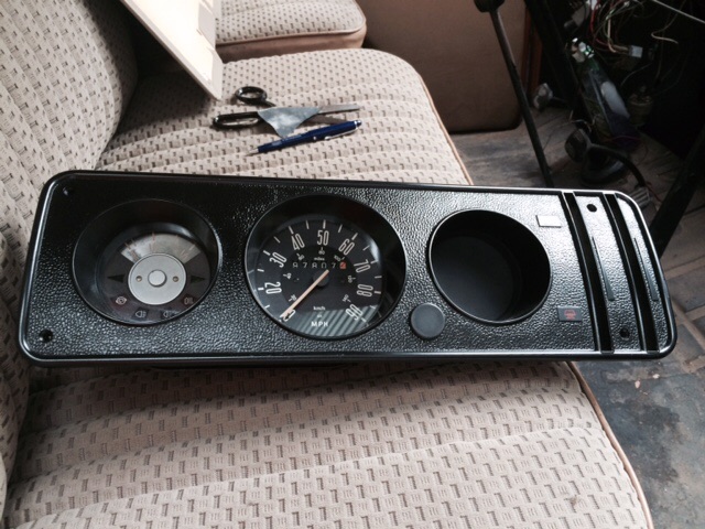 Finished cleaning up the speedometer cluster over the weekend. Came out pretty nice. Found several photos of other late bay double cabs and from what I can tell these came with a gray face gas gauge and a black face speedometer. No e-brake light either.