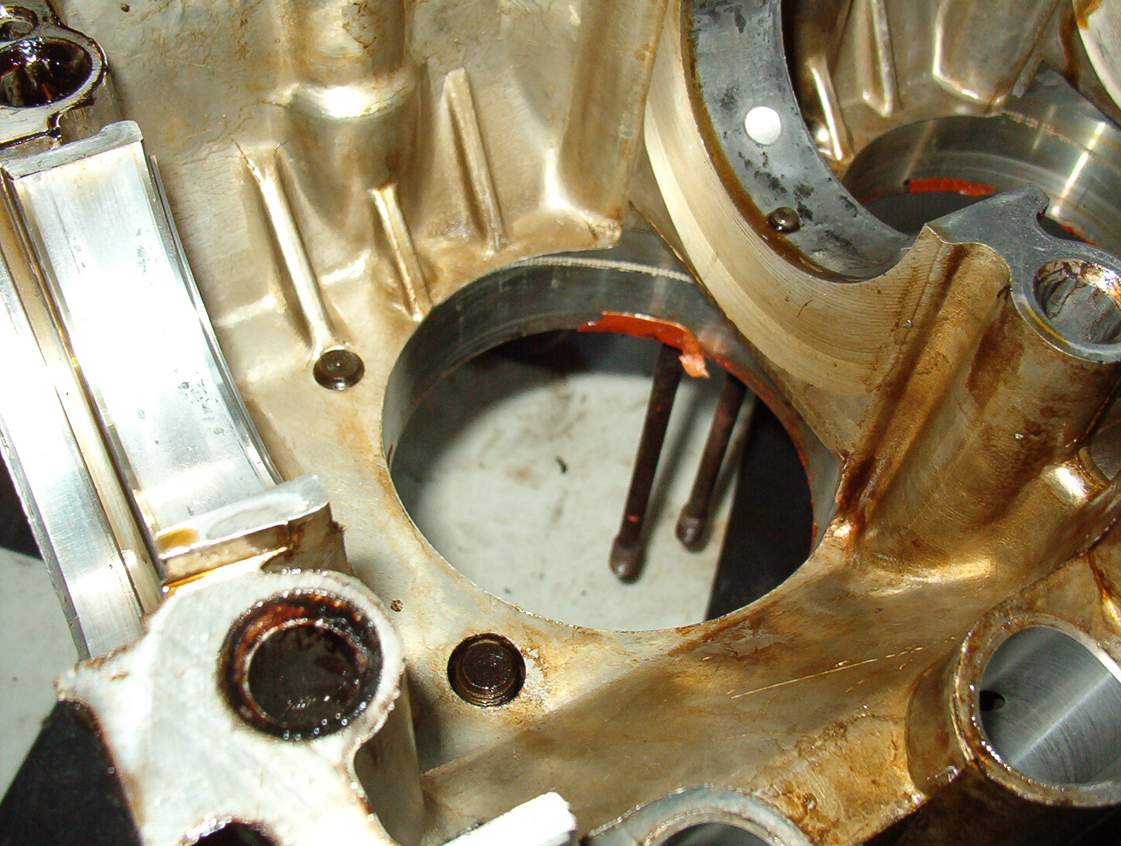 Found too much red silicone inside the case. Machine shop also found some in the heads.