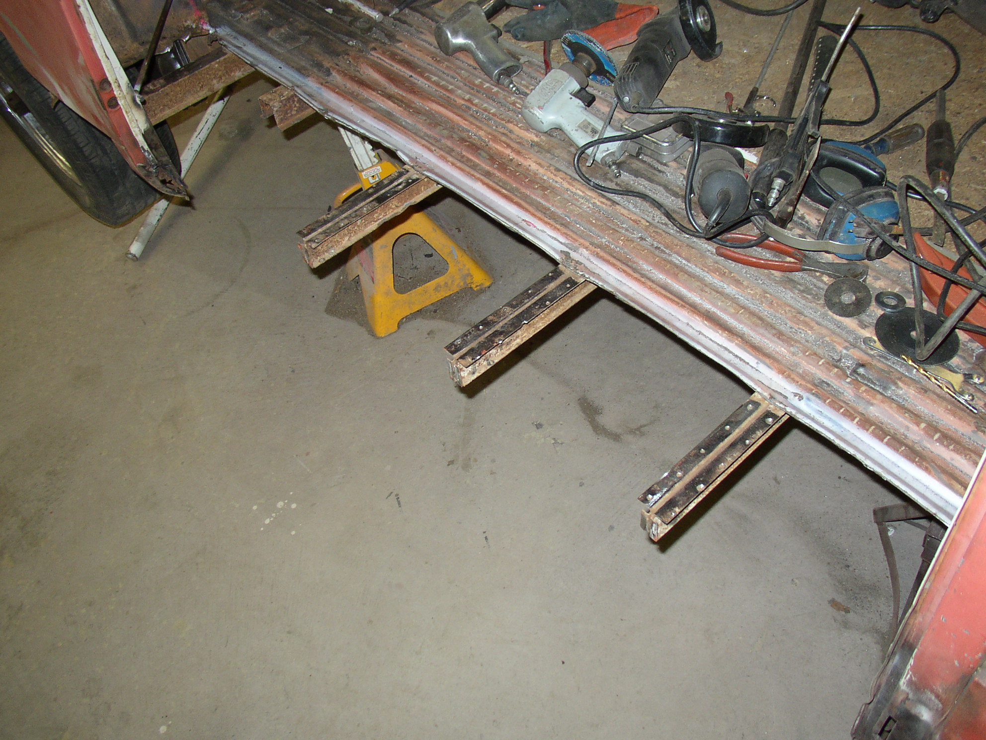 I brazed a temporary support in the lower C pillar to hold it in place. Once the floor is removed this can wobble around like mad without it.