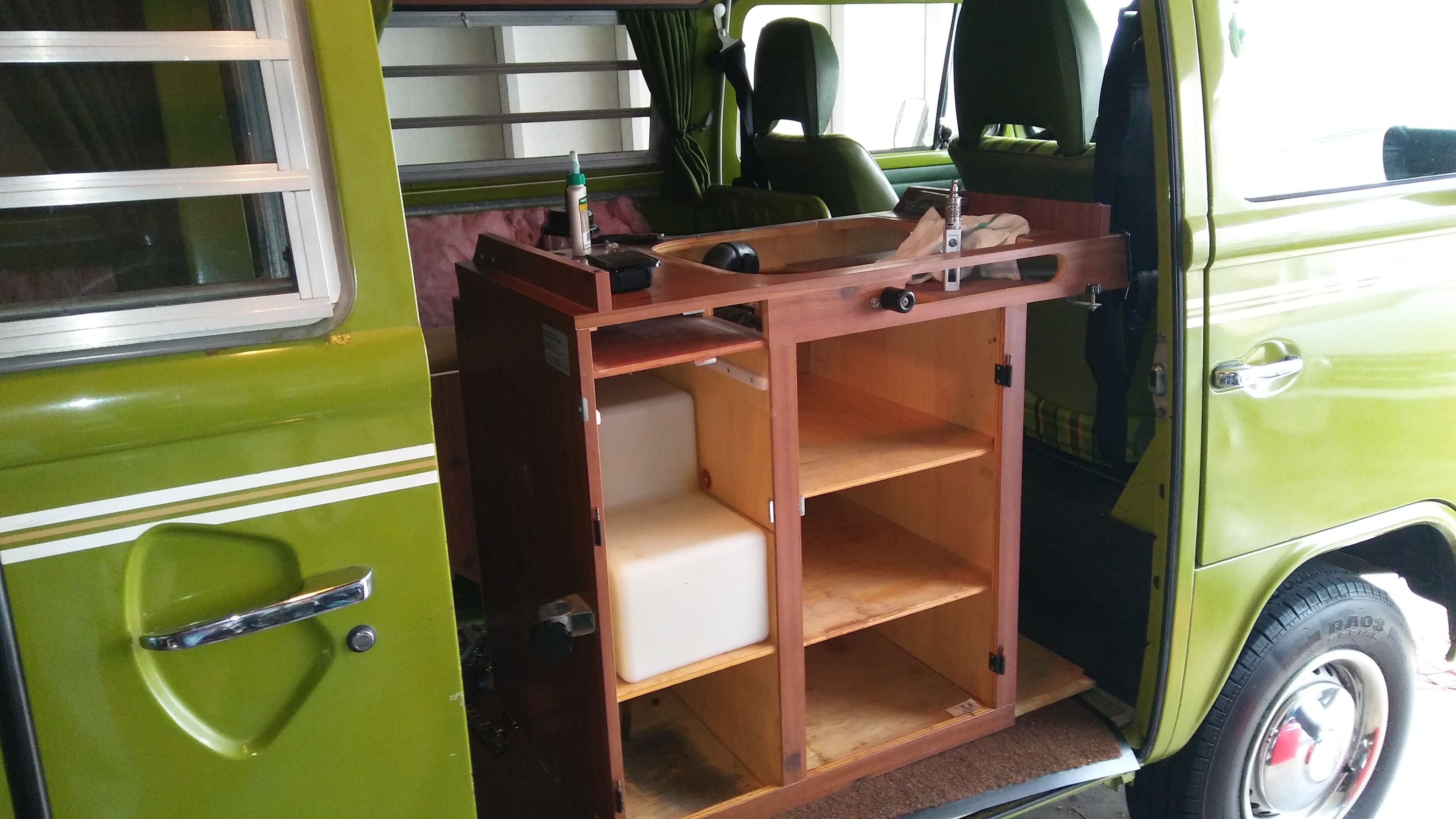 And on this day Greg said "Let there be light." And it was good. :lol: Big shout out to Josh for helping me place the sink/stove cabinet...couldn't have done it without you. Just waiting on the new sink pump. Now off with the bumpers and propane tank!