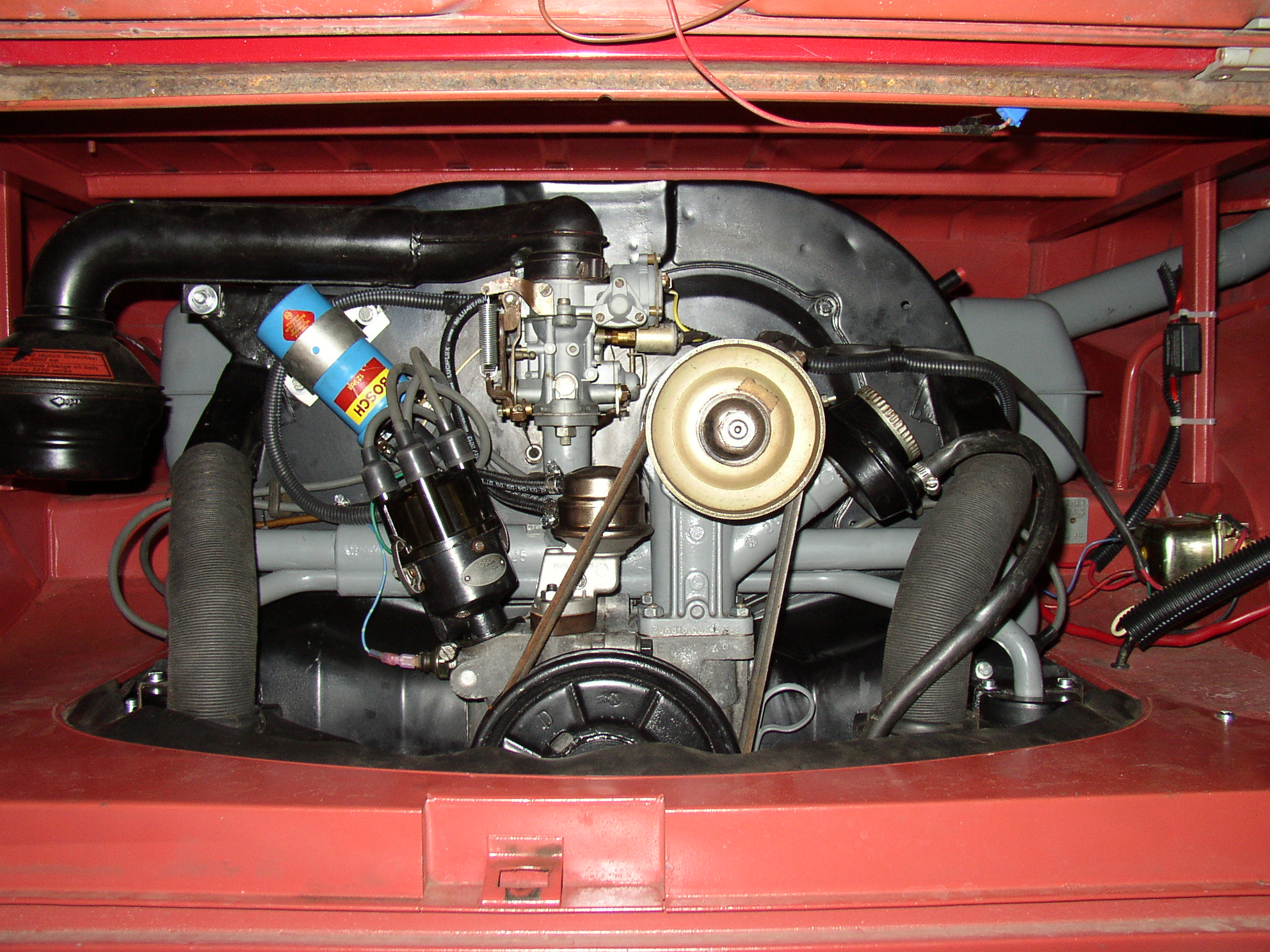 The only thing I don't like is the crankcase breather. Who's a 40hp guru that can tell me what's wrong here? If it were me I'd ditch the draft tube, weld a nipple on the air cleaner and go that route. I've looked at pictures on Samba until I'm blue in the face. Some have a nipple on the AC for the hose but most don't. How should this be set up?