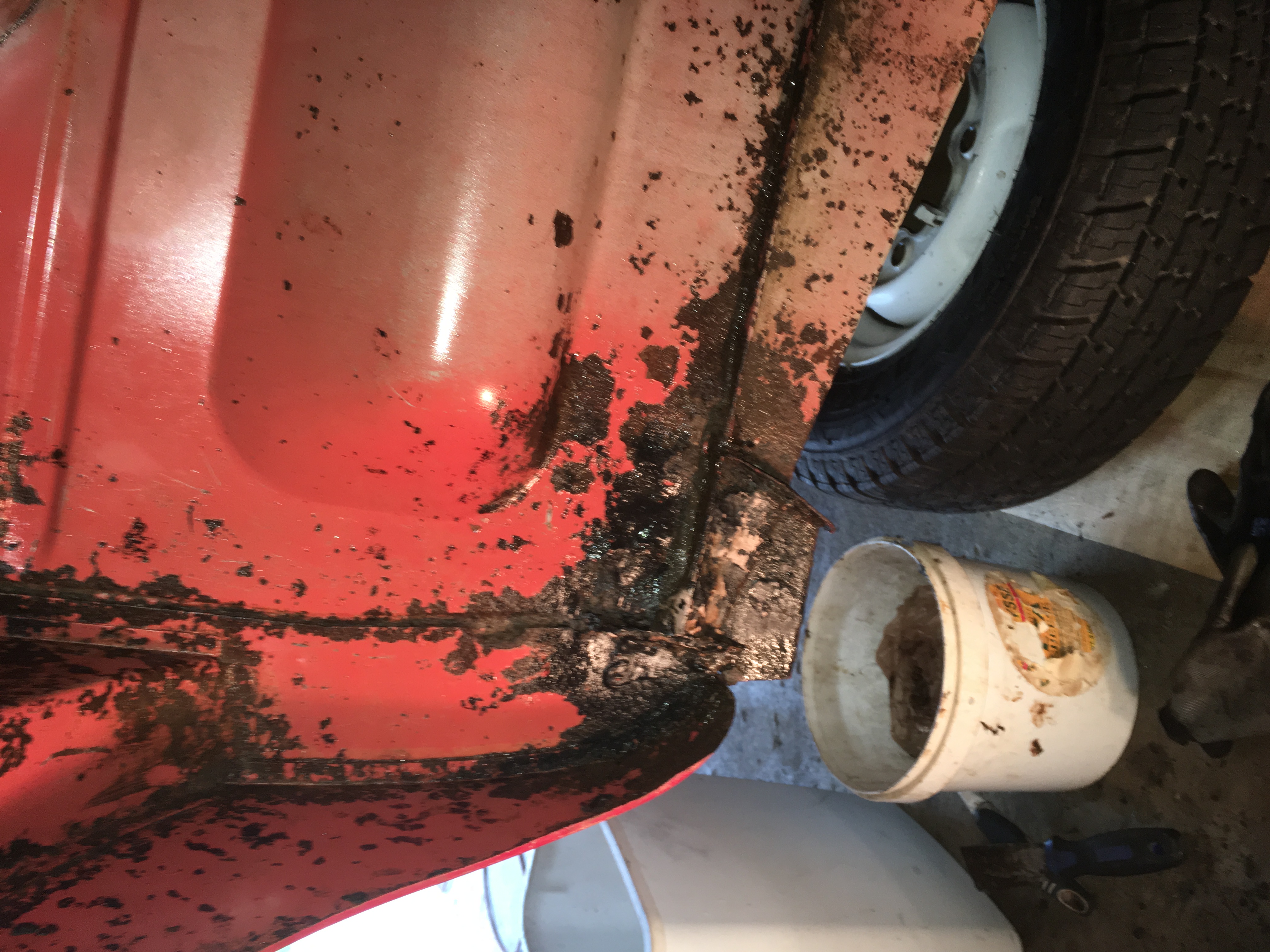 All in all, it is pretty solid, I was happy with that. No holes in the metal but some Bondo in the area near the jack points. It felt solid and there isn't a lot of it, so I decided to leave that alone.