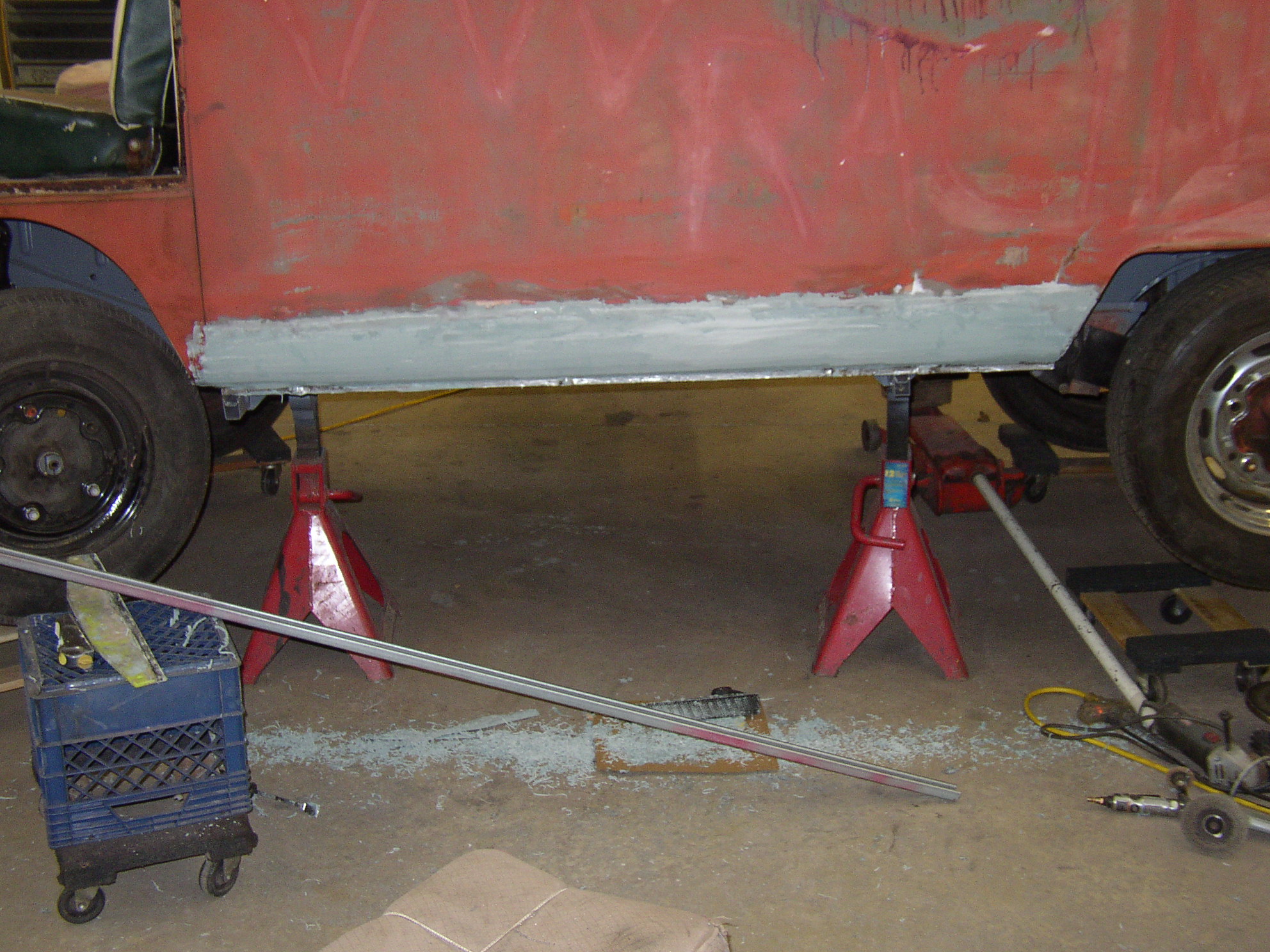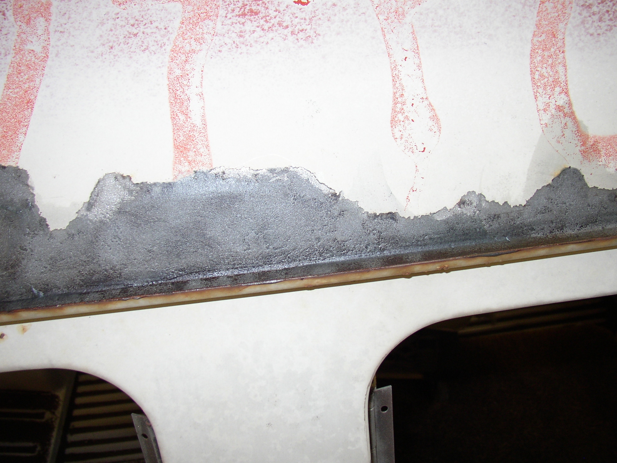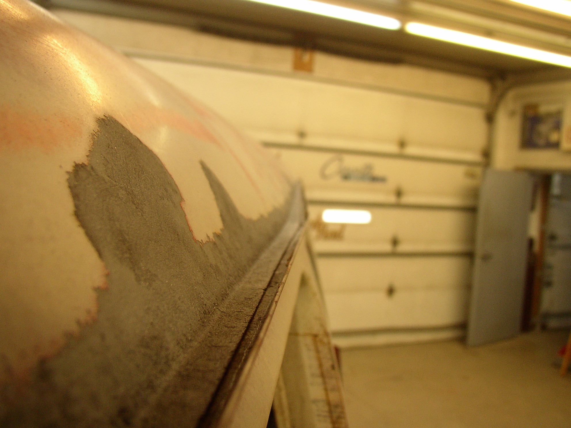 This process is going to be repeated repeatedly. :D After the páte is ground out will be a skim of fiberglass gel, then mud, then primer.
