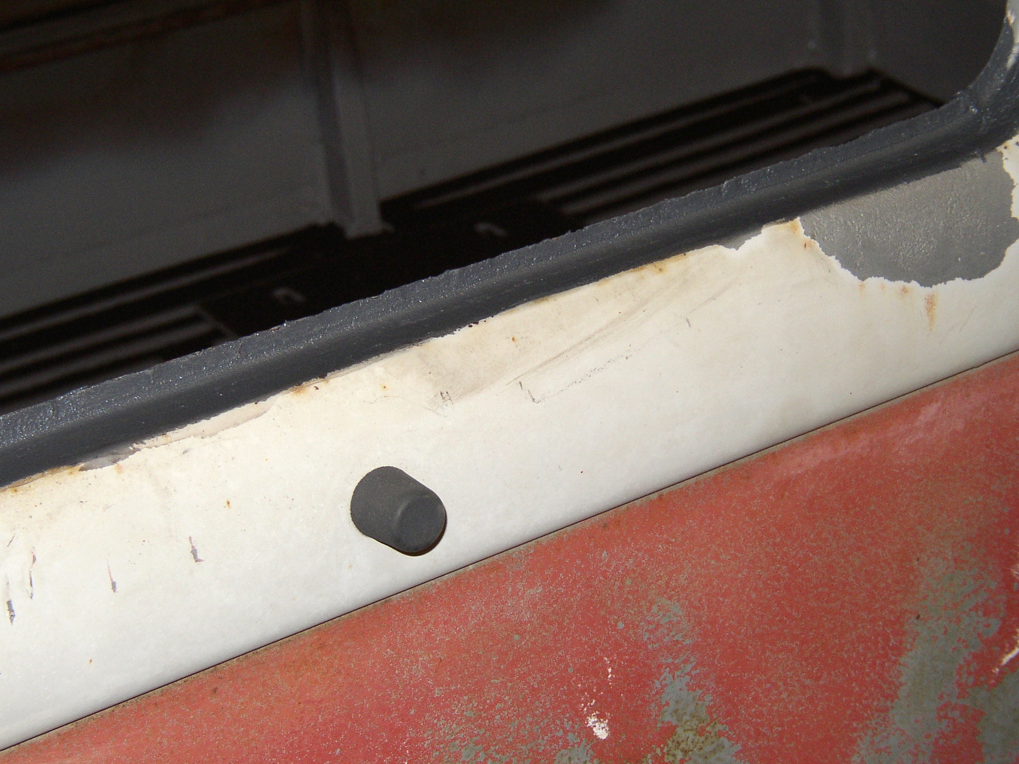 The front cargo door was a mess. Some moron in a previous life had torn the popout window hinge from the door and glued the whole f'ing window back into the door with some kind of high strength glue or epoxy. It took some real muscle and finesse to pry the window out without breaking the glass or doing massive damage, but in the process the window frame got twisted by the glue. There was no real solution for this as it came apart. The window frame was mucked up and needed pulling out but that's not easy.
