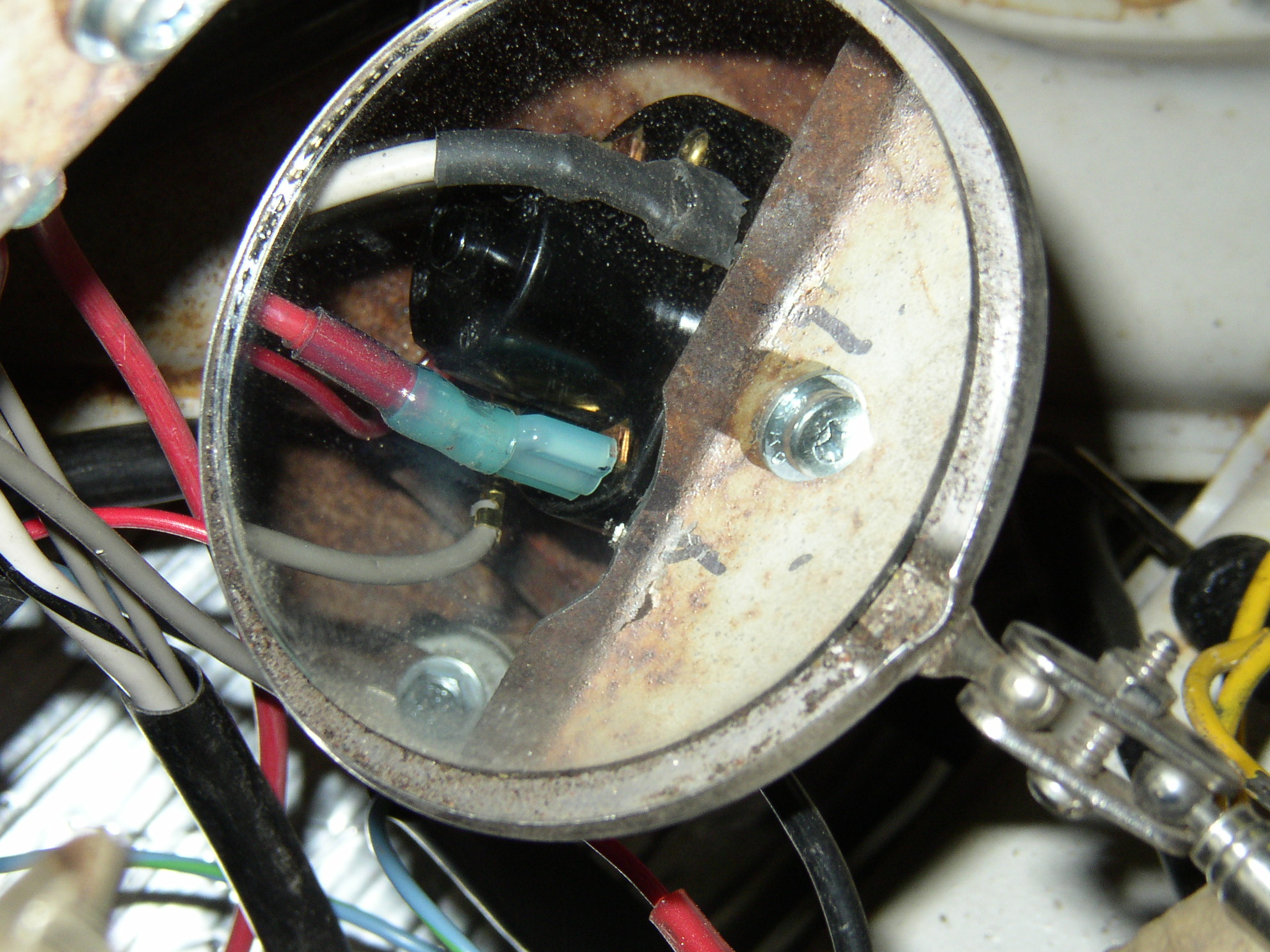 Clamped a bubble mirror to the garage door so I could see the taillights while I was sorting out the electrical.