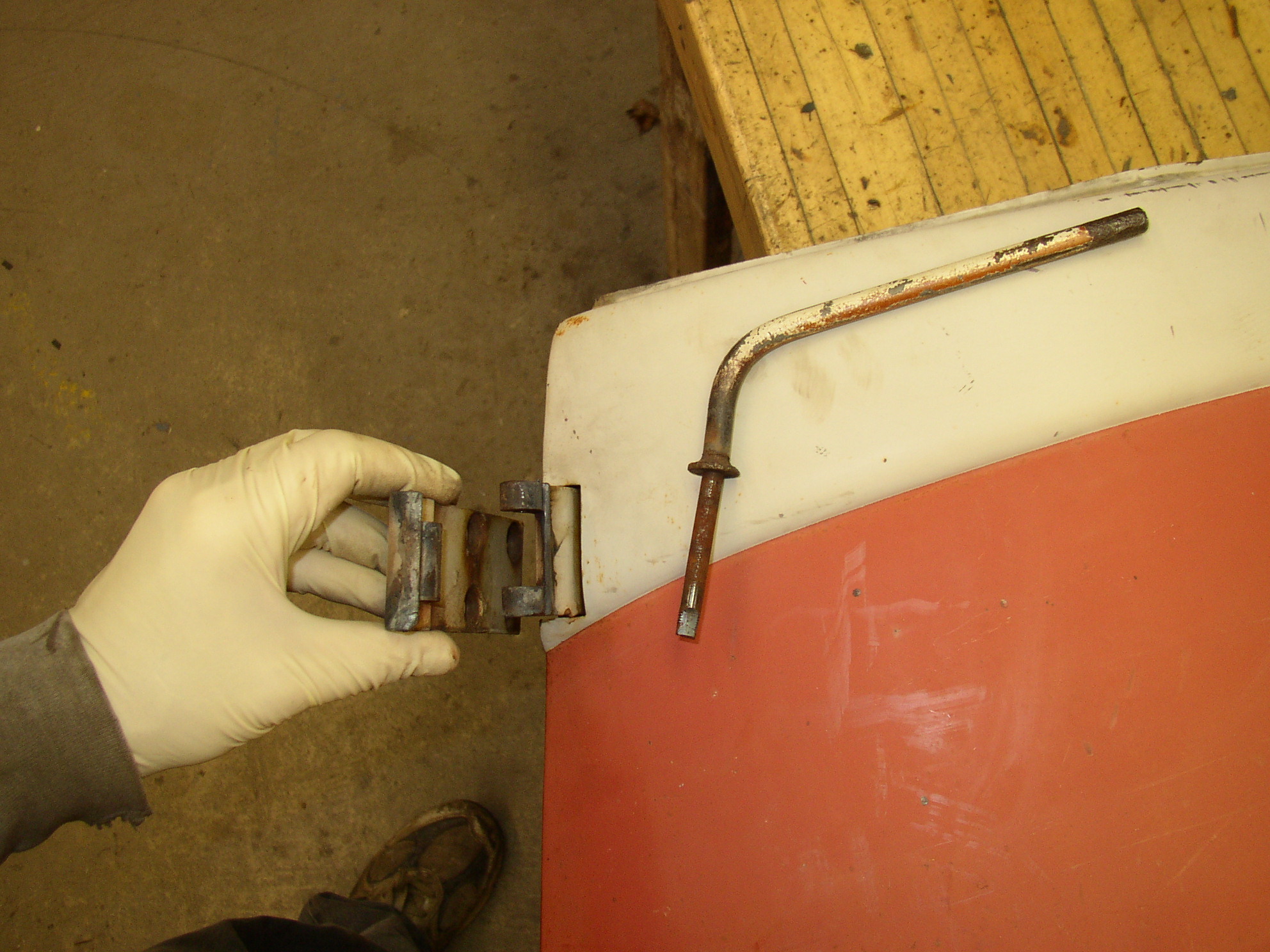 Go to put the driver's door on and realize I hadn't looked at it in nearly 2 years. I had forgotten it was hit near the handle, putting a good "V" not only in the outer skin but also the inner structure. Strip it to a bare shell, I didn't take a "before" picture, but spent an afternoon with a BFH and blocks of wood making it straight again. Even the latch was bent, but I was able to straighten it too. The outer door handle wouldn't work prior to straightening due to geometry problems, afterward it worked fine. Funny how stuff like this eats up a bunch of time, much more than you'd anticipate or estimate. Good thing I'm not doing this job on a quote or flat rate.