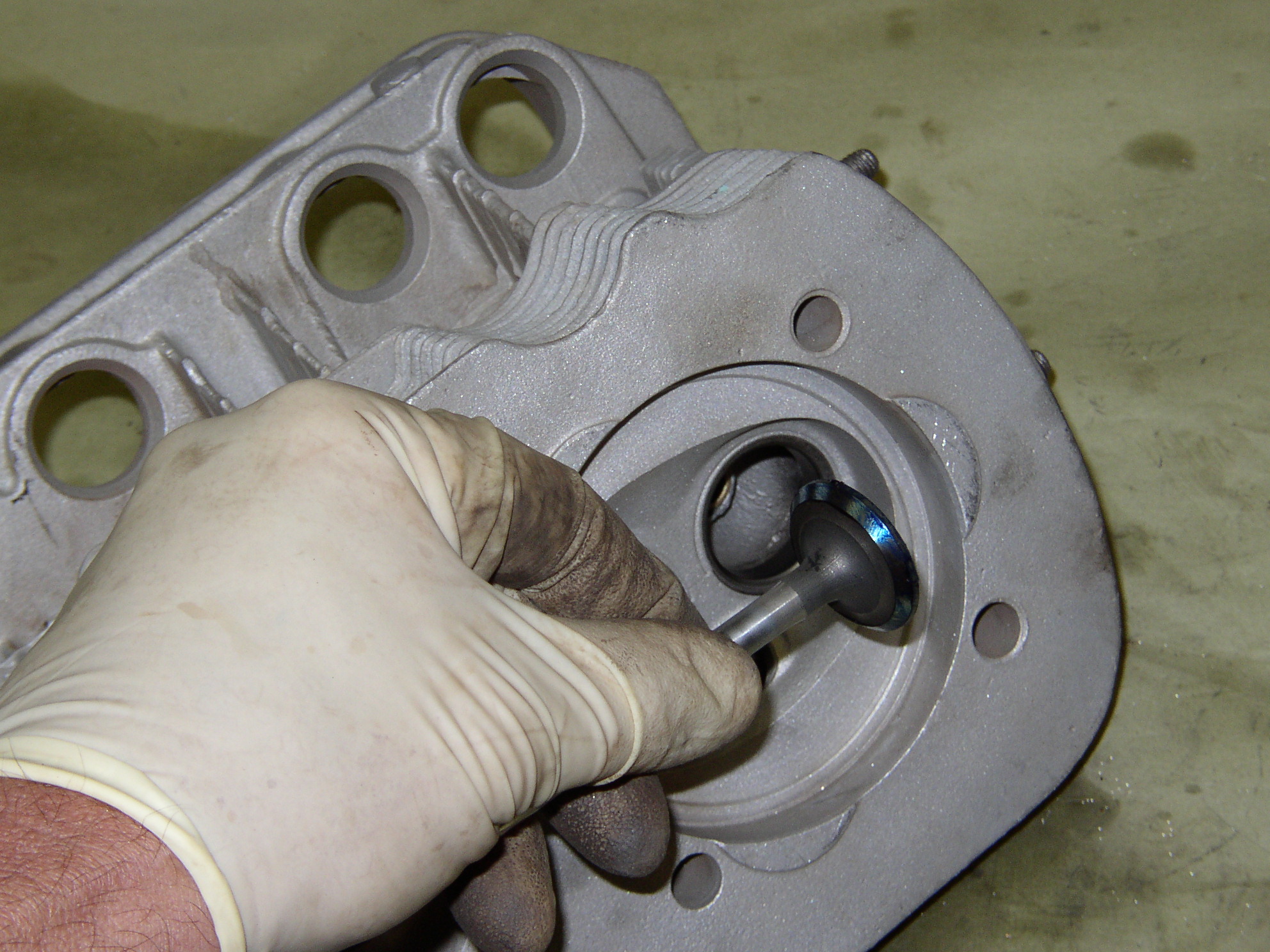 Once they're honed and look nice, check for wear, taper, and egg-shape, amazingly these check out like brand new- zero" of those. Once that's done, bead blast the fins to get rid of rust and dirt. Soda blast the Mahle pistons. Weigh them, they're all within 1.5 grams. Disassemble the heads, put new exhaust valves in, lap them, check them with Prussian blue dye. I bet this tube of dye is older than some LeakOilers. Check for leakage and an intake leaks, so off to the machine shop they go.
