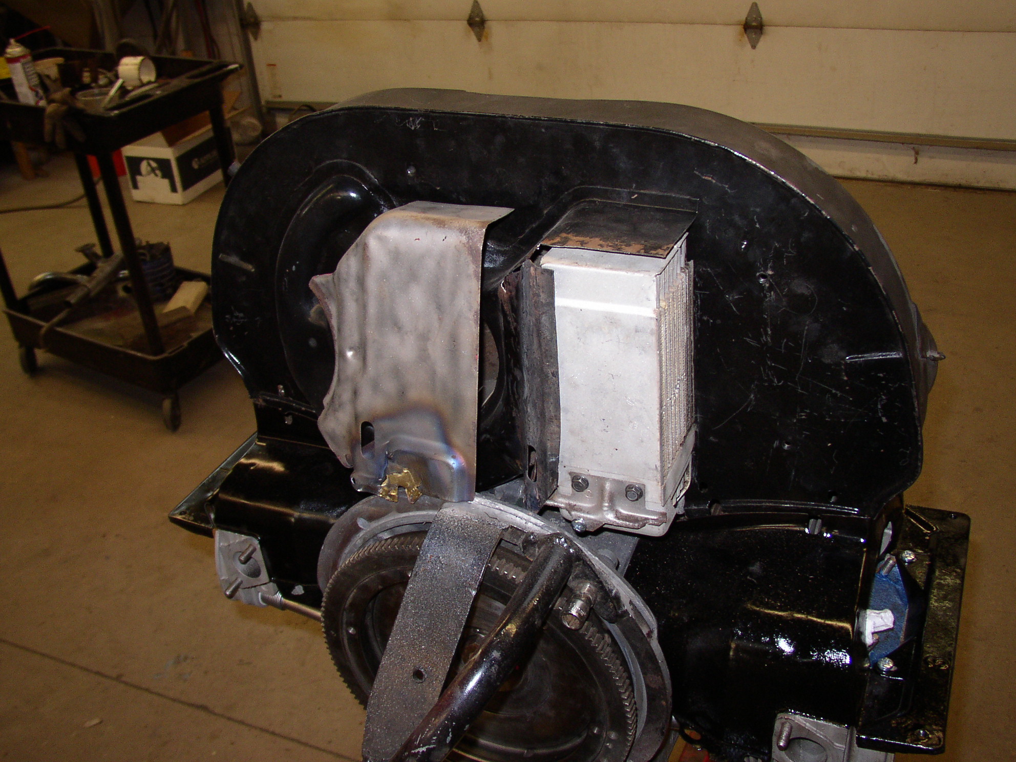Bolt on the T4 oil cooler and modify the shroud. T4s have 40% more surface area. It's easier if you use an old shroud to donate a piece, I'll put this ugly pink MF out of it's misery and cut it up.