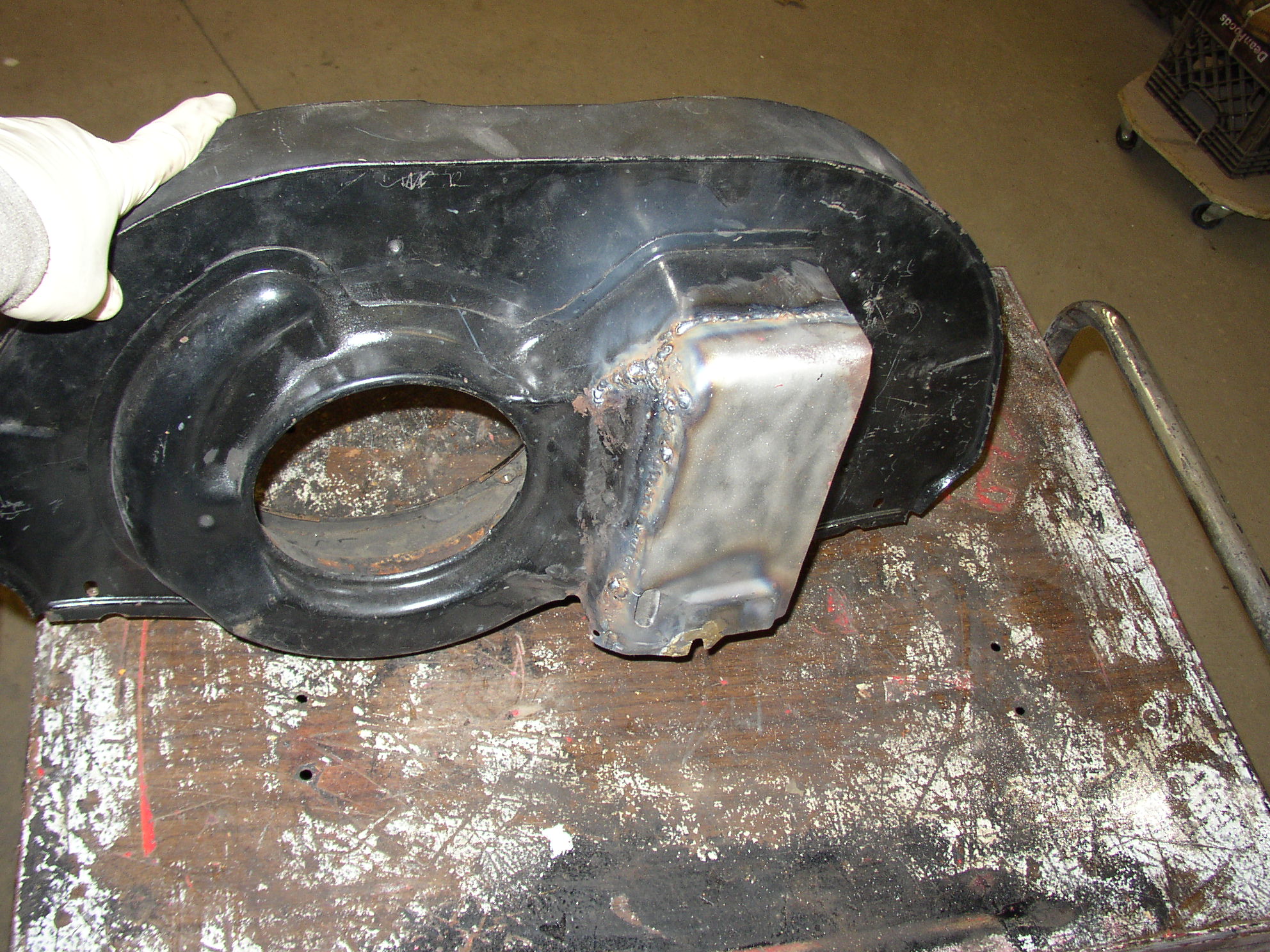 Beat it up a little and fit the new piece in.