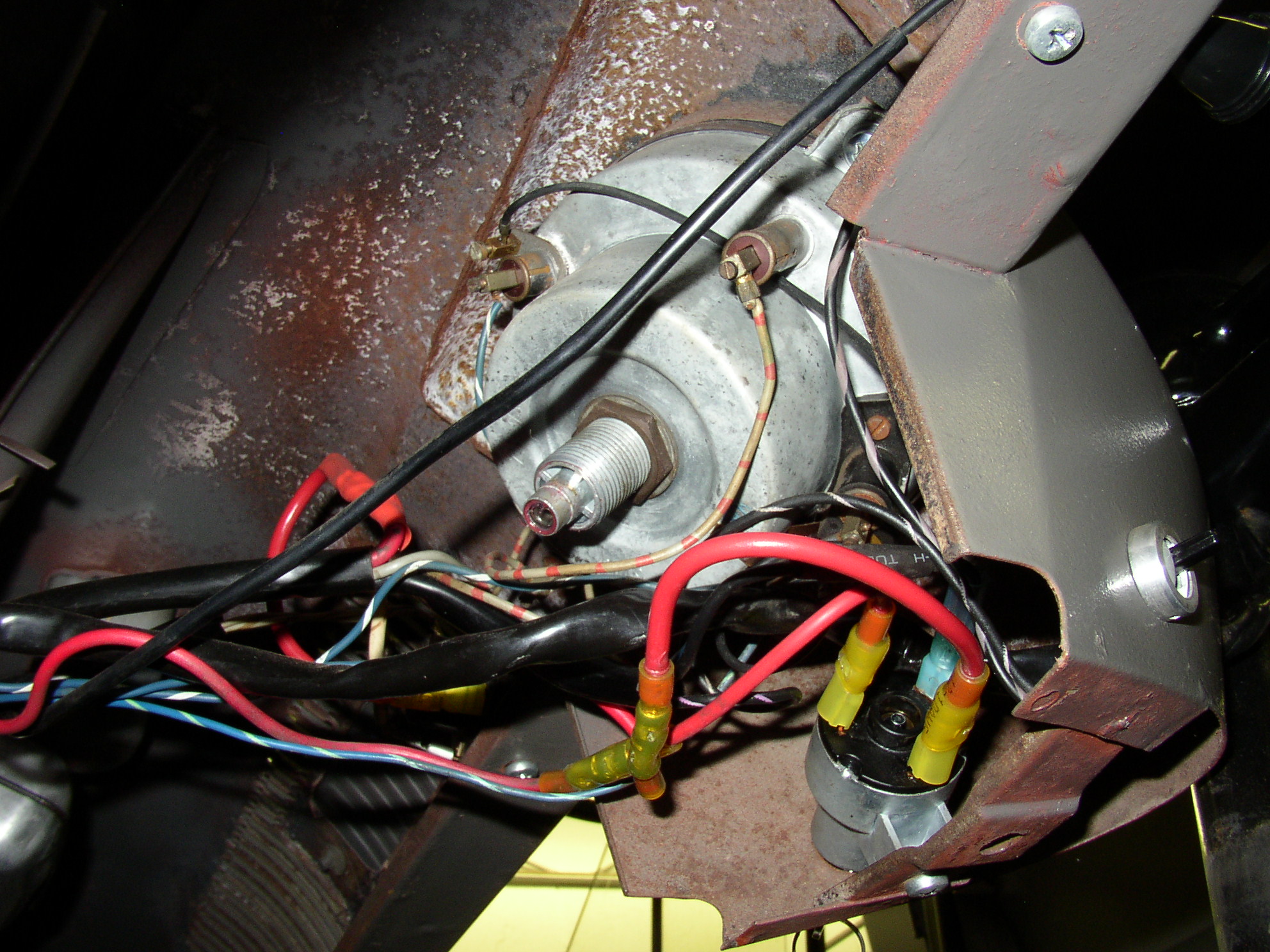 At my age, I'm not keen on chasing electrical problems every time I want to go for a spin. I remember all the problems I had with my old '59 with an old harness and screw on terminals. Sure it was original, but original ain't fun when you have no blinkers one day or one or the other brake light is out the next day, or the horn doesn't work or the headlights suddently go out. Begining with the starter, the same pattern was emerging with this bus. While I realize for most folks the wiring in these old buses isn't that complicted, but for me, I decided to have Bruce handle it and I knew it would be done right.