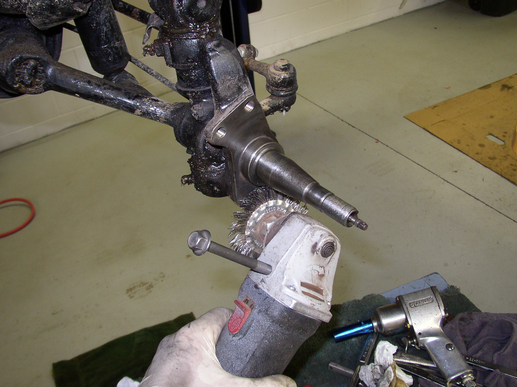 I had some spare spindles and wanted to mock them up on the bench before tearing my bus apart, so start by cleaning the flanges and threads: