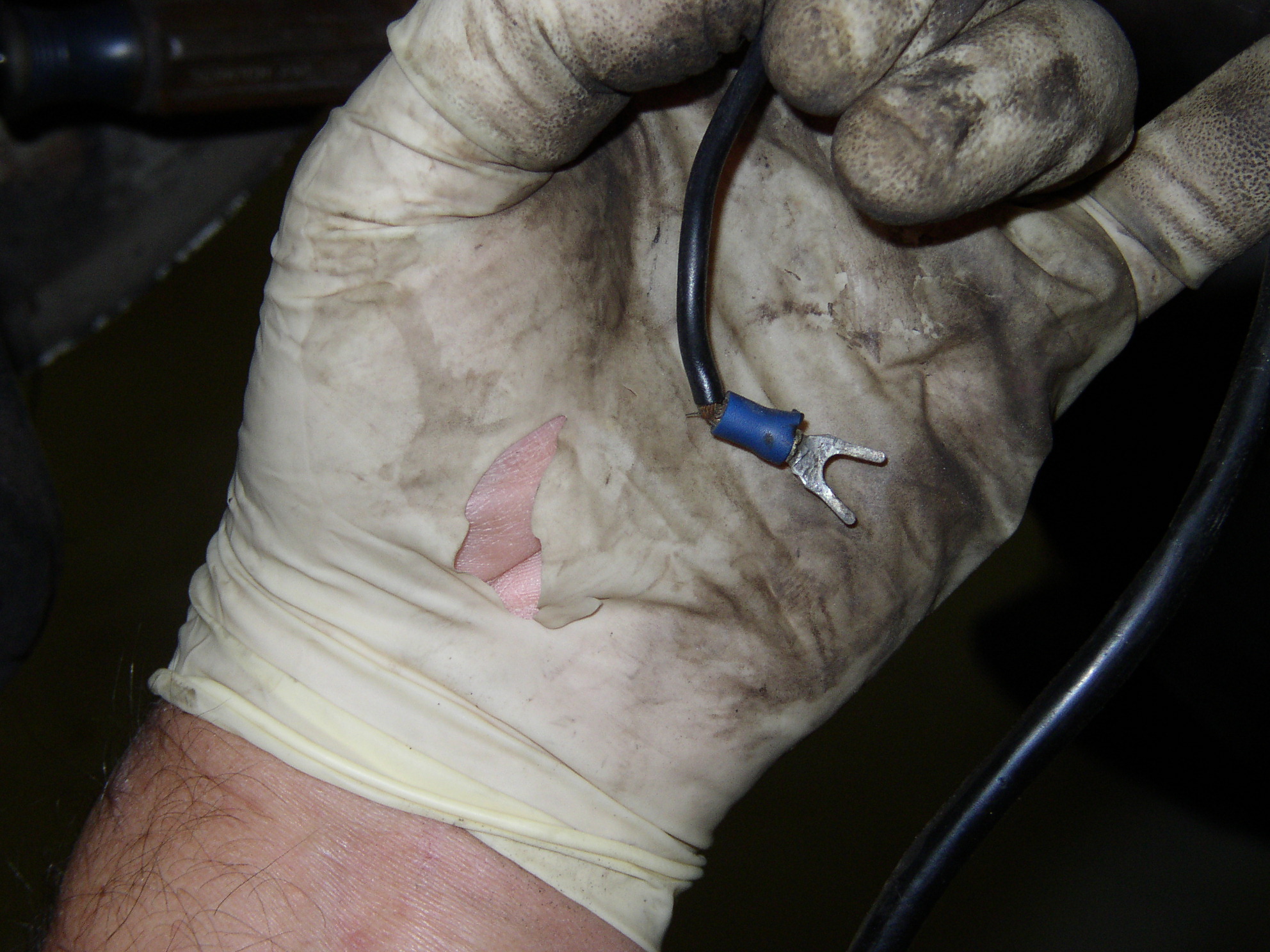 Here's an unfused 10ga wire rubbing on a bracket, ready to short out and start a fire. Voltage regulator feed wire, yech. Coil feed, yech.