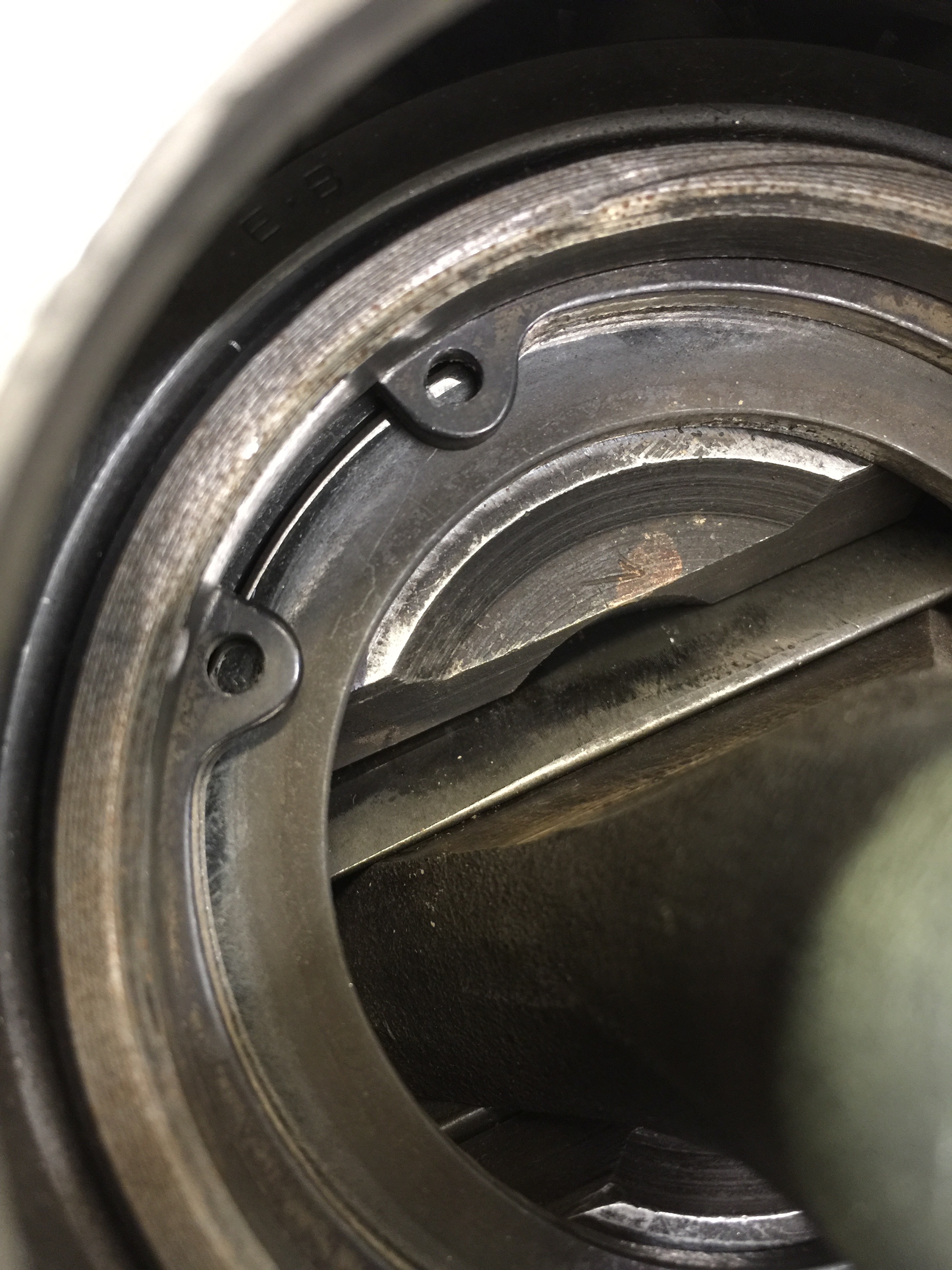We had one issue with a bad outer axle bearing, but Bruce had a backup. Some of the other original bearings were bad, so Bruce swapped them out. Someone in a prior life really butchered one of the RGB housings (probably trying to get a freeze plug out) but Bruce cleaned it up. (You may see that prior damage in some photos)