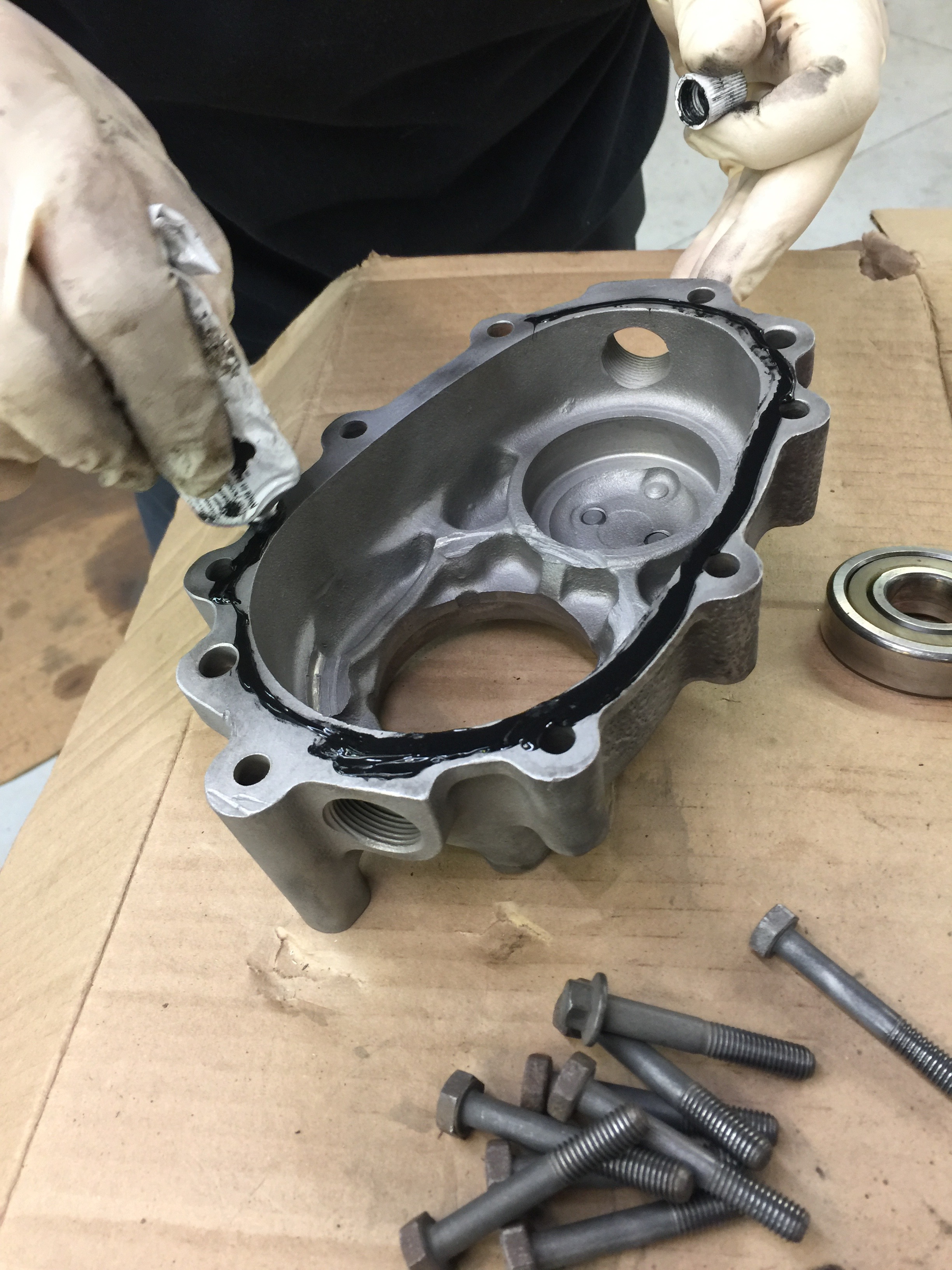 The rear axle seal housing install may be straightforward to most, but again Bruce stressed clean, clean, and more clean. He had me re-blast the housing and make sure I got all the star and the adjusting bolts super clean. The whole RTV lesson from yesterday was repeated.