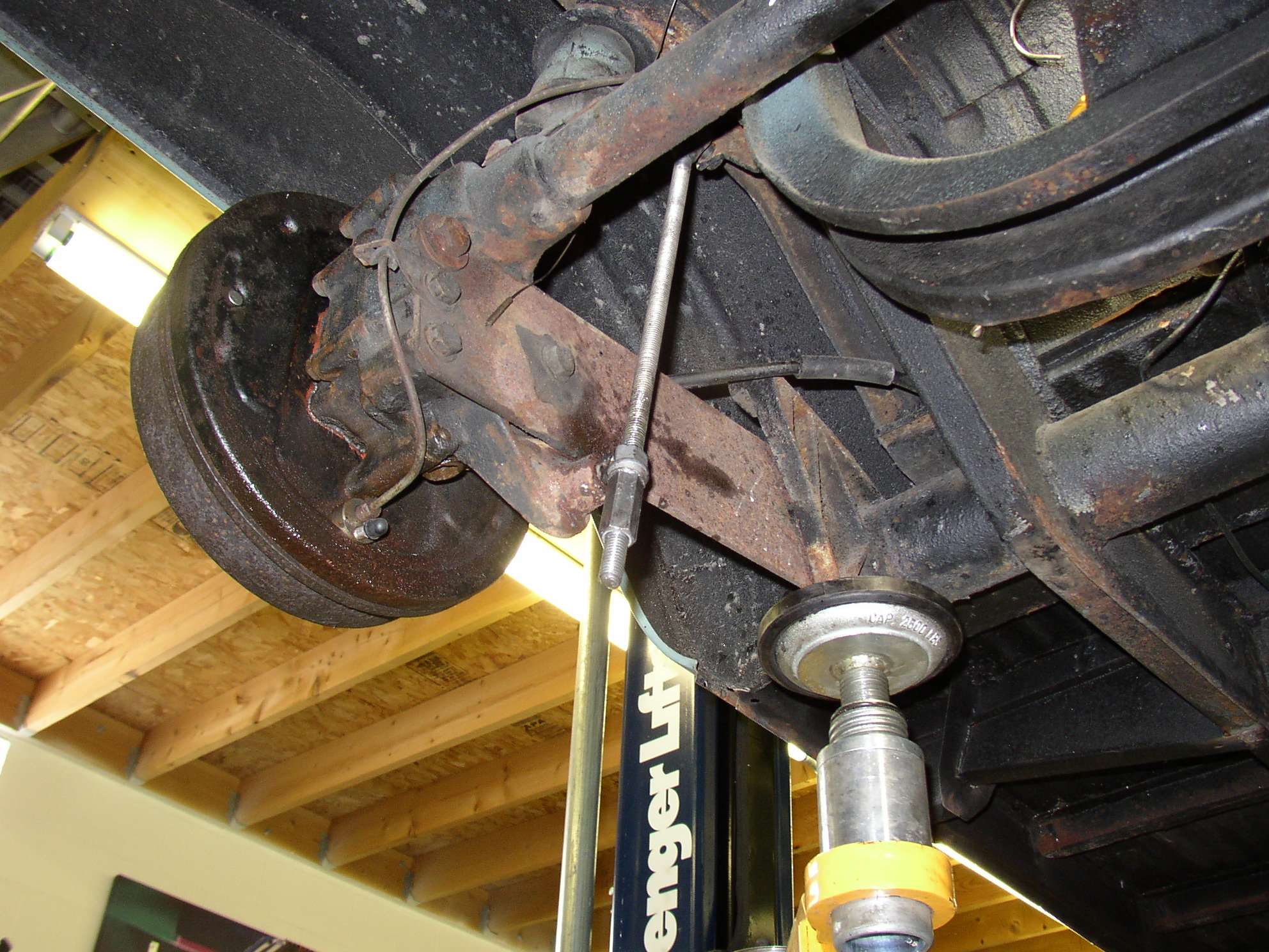 Replacing the torn axle boots requires leveling the axle with my homemade torsion bar compressor tool. Once again, keep hands and feet away from moving parts. If those welds break loose bad things happen and I'm not the best welder.
