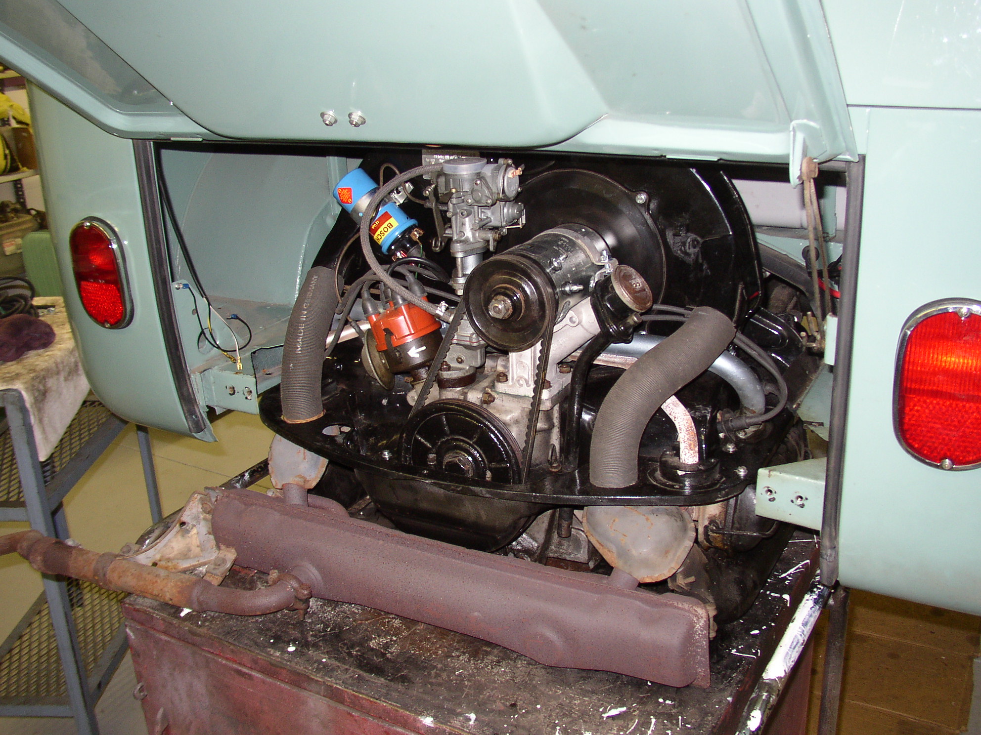 Test running the engine to make sure the gen charges, light works, fan doesn't rub, etc. Exhaust pipe goes to my exhaust fan in the wall.