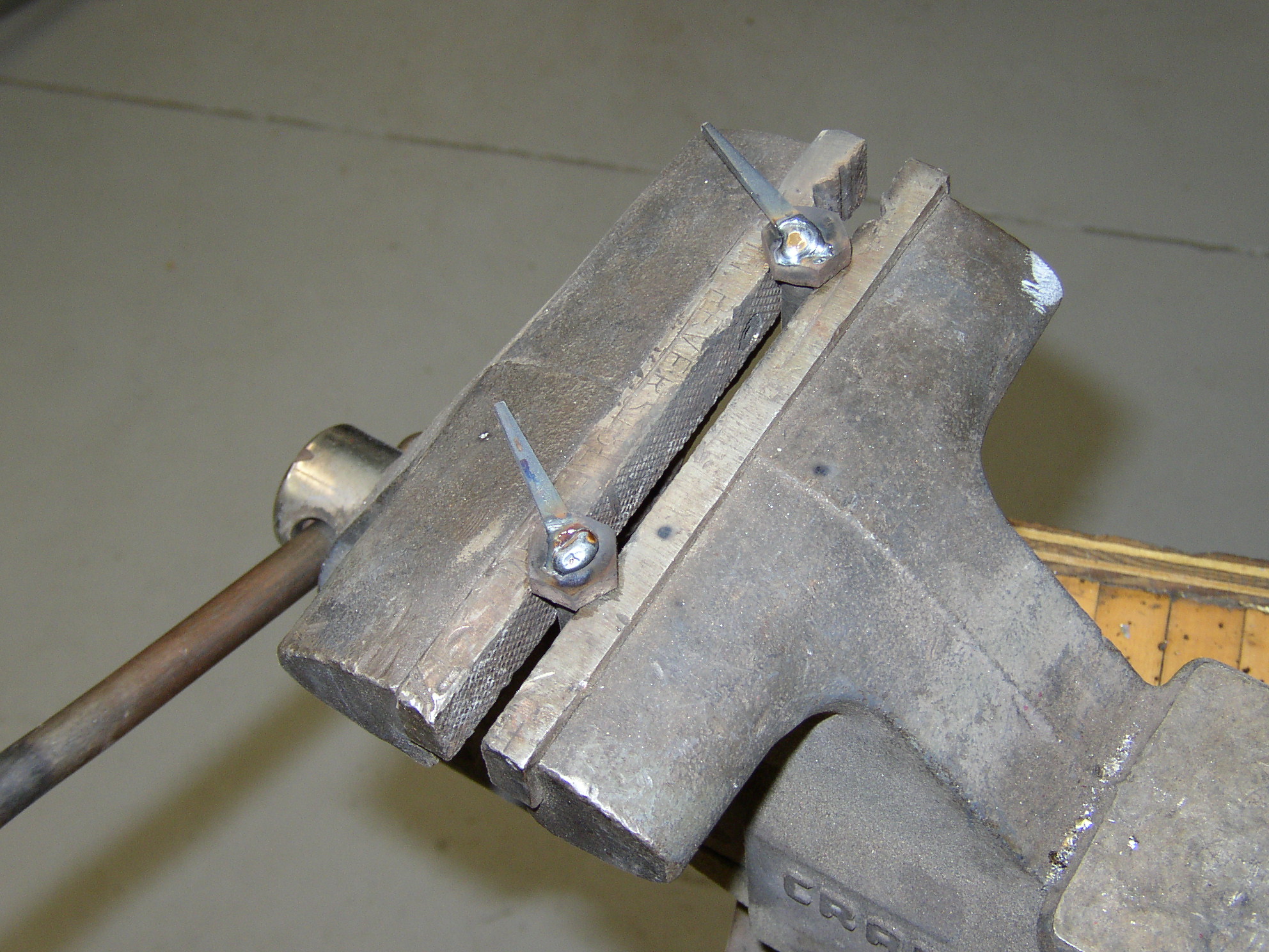 Those stupid upper bell bolts gave me a fight coming out because they turned, so I welded nails to them to prevent that.