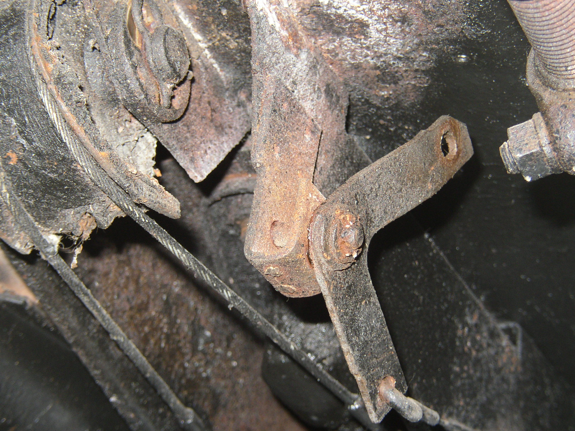 I noticed some other issues while I was working, like the throttle cable binds badly inside the tube, the throttle linkage lever in front was really worn out and one of the spring clips was missing. This shit was also rusted to where it had to be cut off with a whizzer wheel.