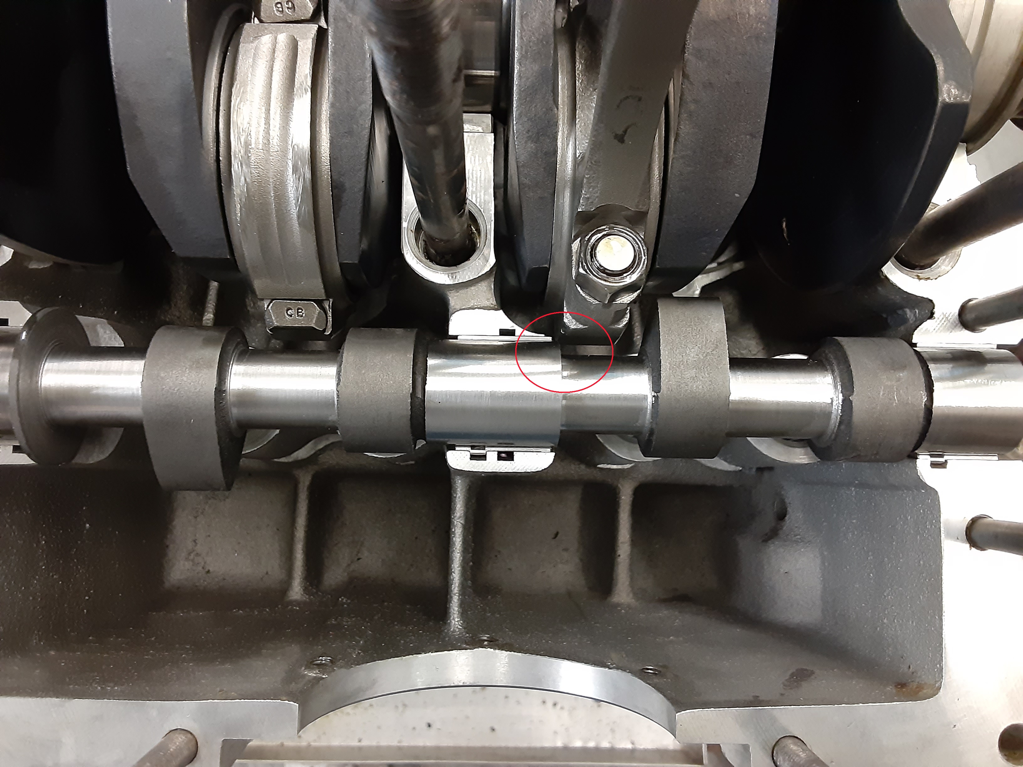 The cam has to be machined for clearance on a stroker engine because the con rods pass right near the cam, I had a buddy cut it on a lathe for clearance between the lobes. I see it's still a little close near the center so I'll have him shorten up the center journal about .030".