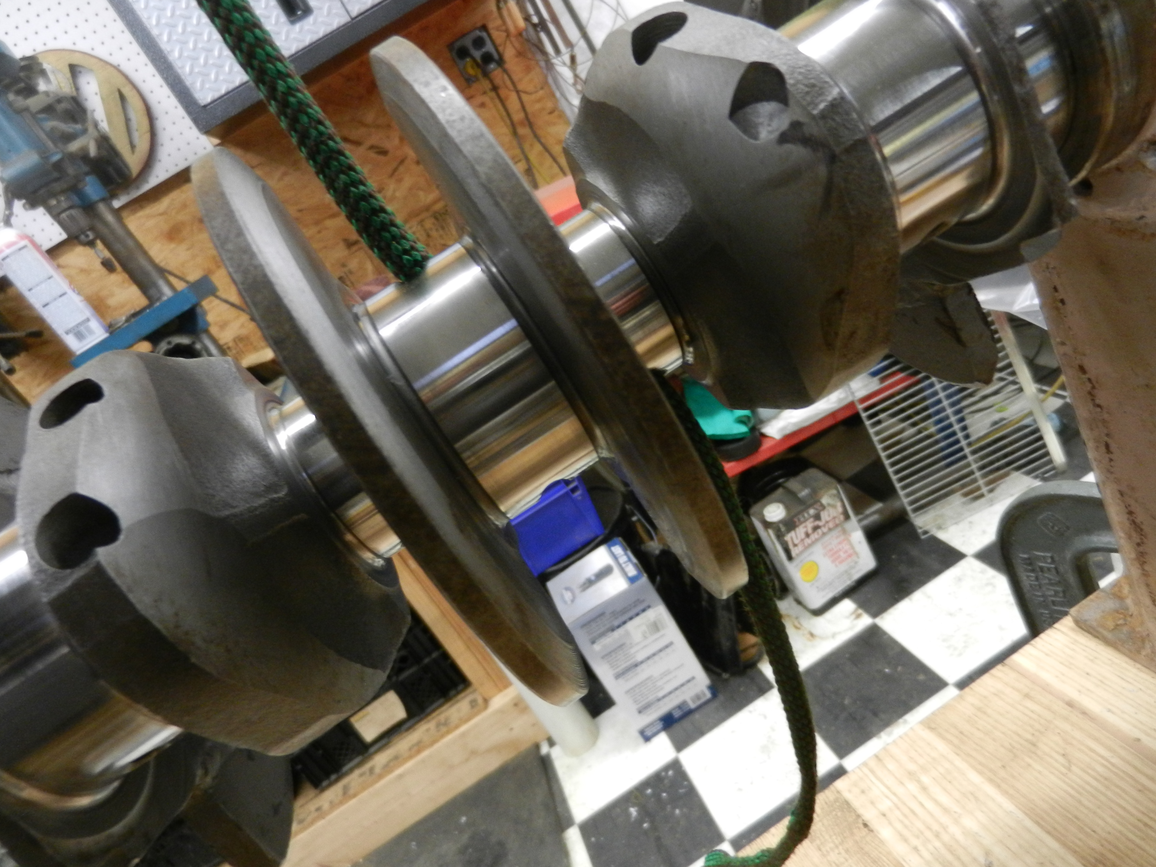 The counter weights are welded on a stock crank to offset this imbalance.The crank is then balanced. The result is a crank that rotates perfectly with no "whip" do to imbalance. Which results in an extremely smooth running engine capable of much higher RPM without beating the center main bearings and journals. Do to this added material, it is sometimes needed to :clearance some areas of the case.