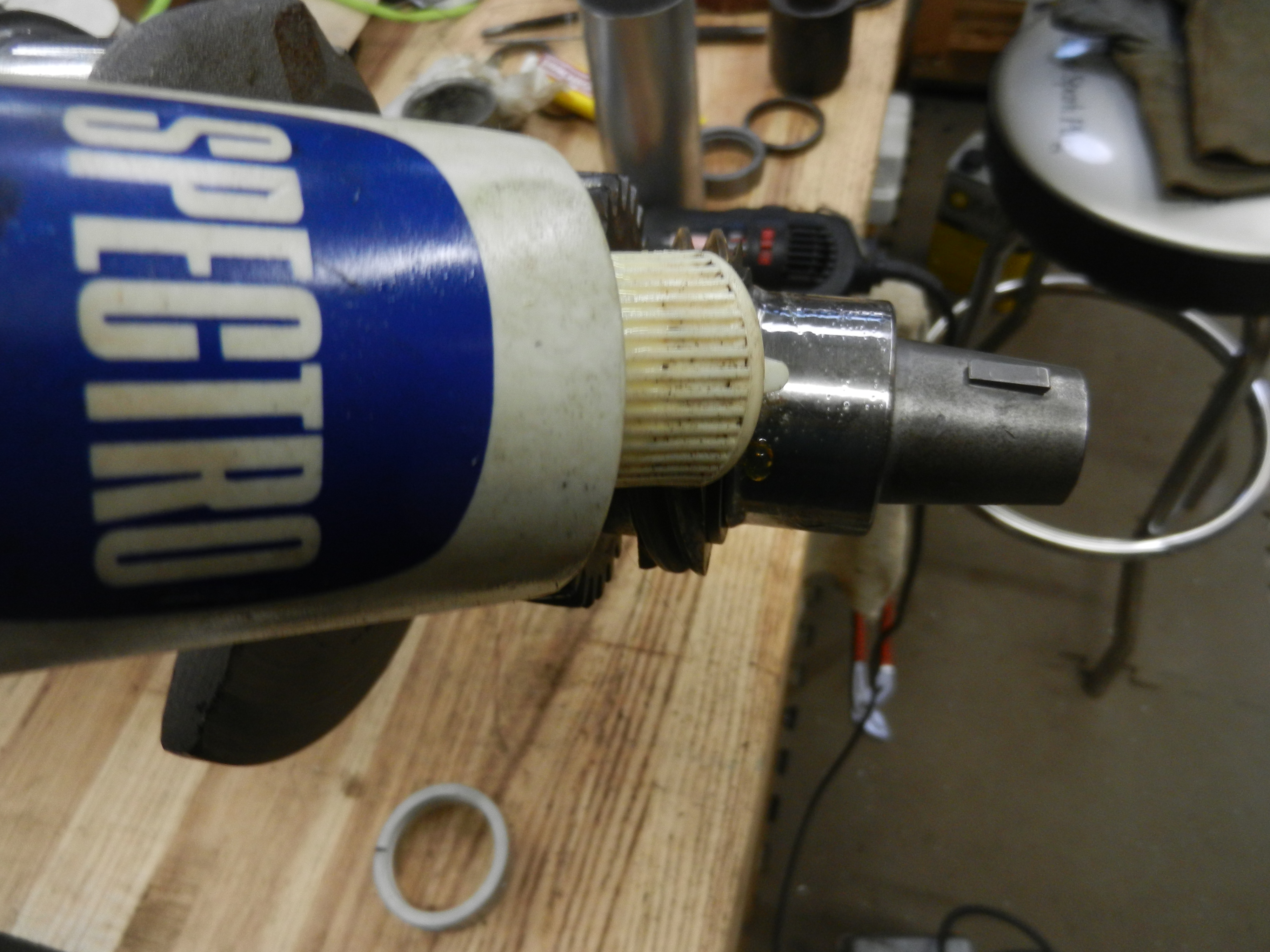I pump a little oil into the journal. This pic shows another journal (no pic of #3) I heat the gears on a piece of fire brick with a torch. Be sure you orient the gear so the timing marks face the nose of the crank. Install the spacer and heat and install the dist drive gear. Then, install the snap ring in the groove in the crank. This is where i had a small problem. The snap ring would not seat in the groove. Shit. Maybe I did not have the gears seated. Pull them off and try again. Re installed and had the same issue. Pull them off again.