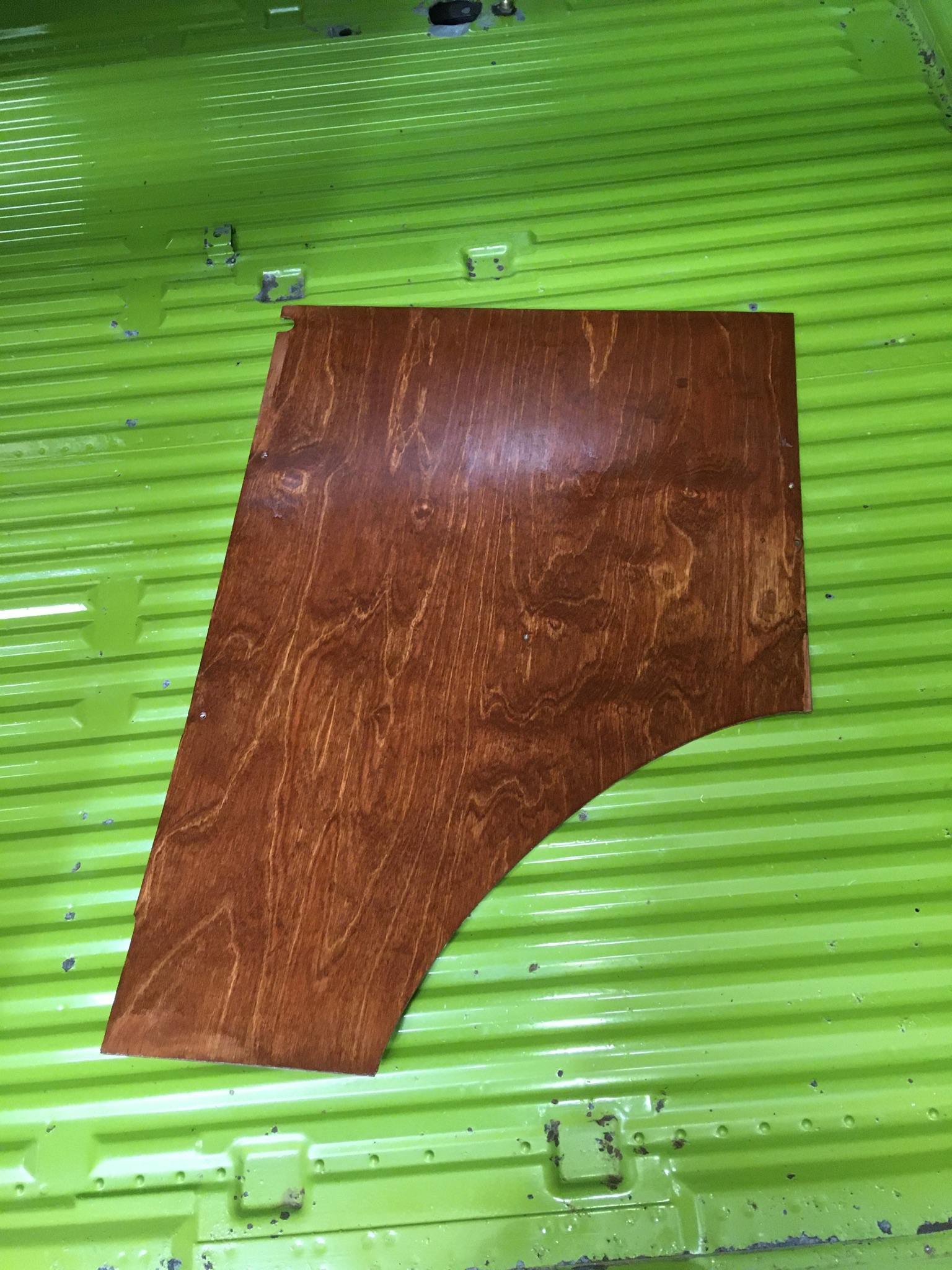 I am very pleased with the way the panel turned out. Took the clamps off and sanded it down. Came out way better than I had hoped. Of course there is some water damage visible and there is some difference in color because of that. Still all in all not to bad. First two pics are of the back, then a profile shot and the last two are of the front. I did not sand as much on the back because I was not trying to lighten any of the discoloration.