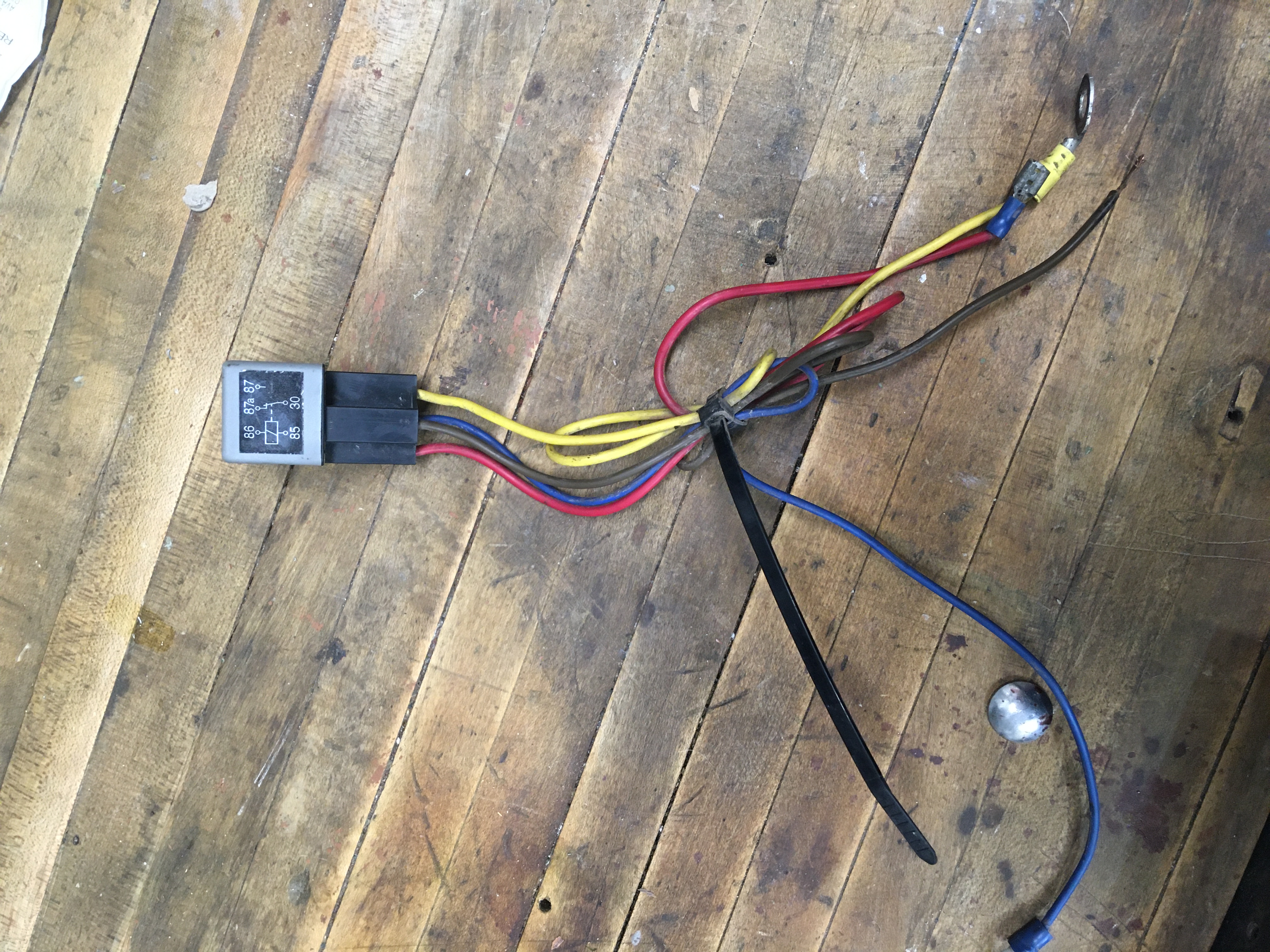 Wire location that ended up working. Harness and relay I removed. The diagram on the relay looks the same as the one toolbox recommended though a different brand and it was mounted underneath the bus.